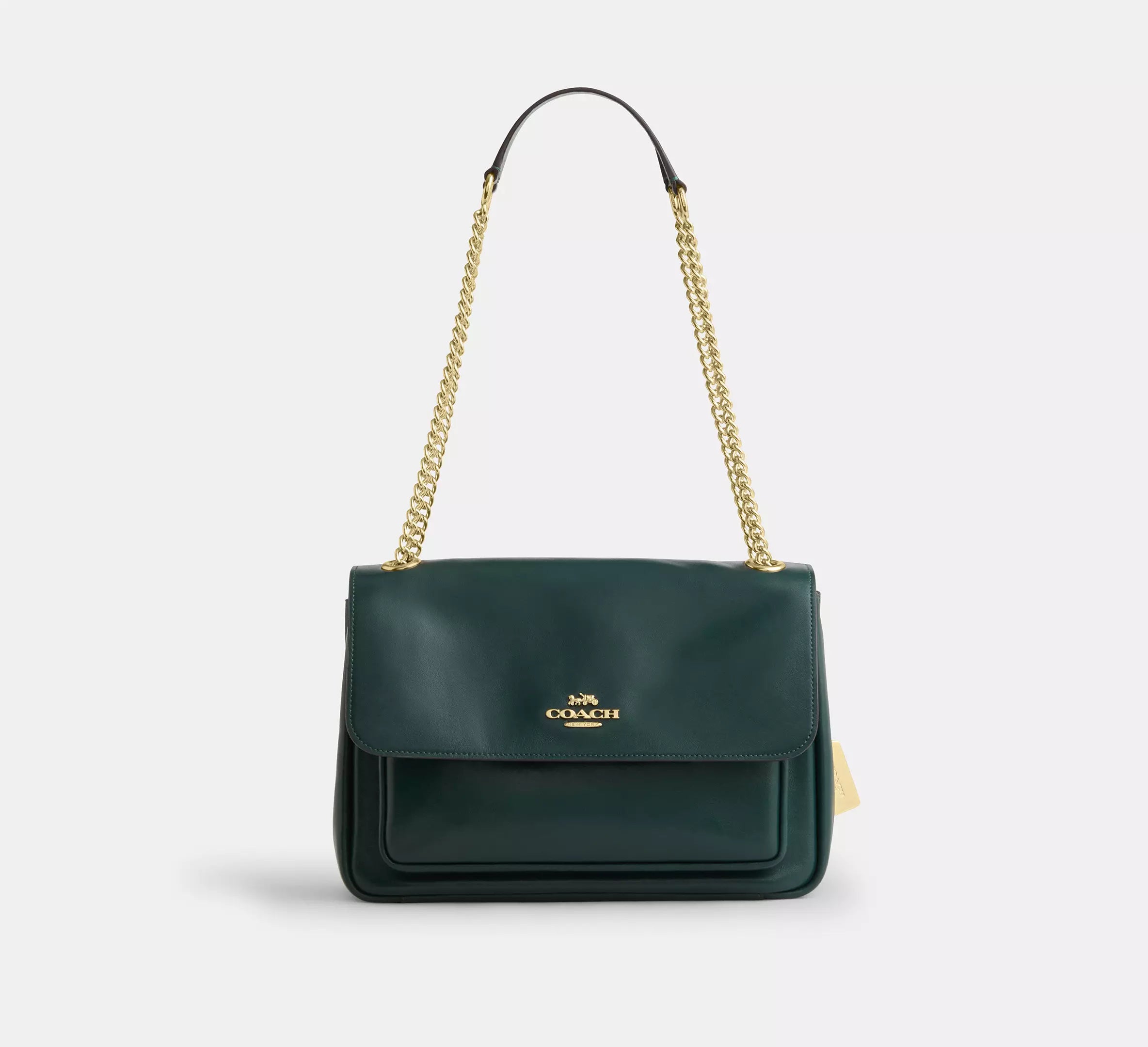 Coach Evelyn Large Shoulder Bag With Quilting - Gold/Dark Teal