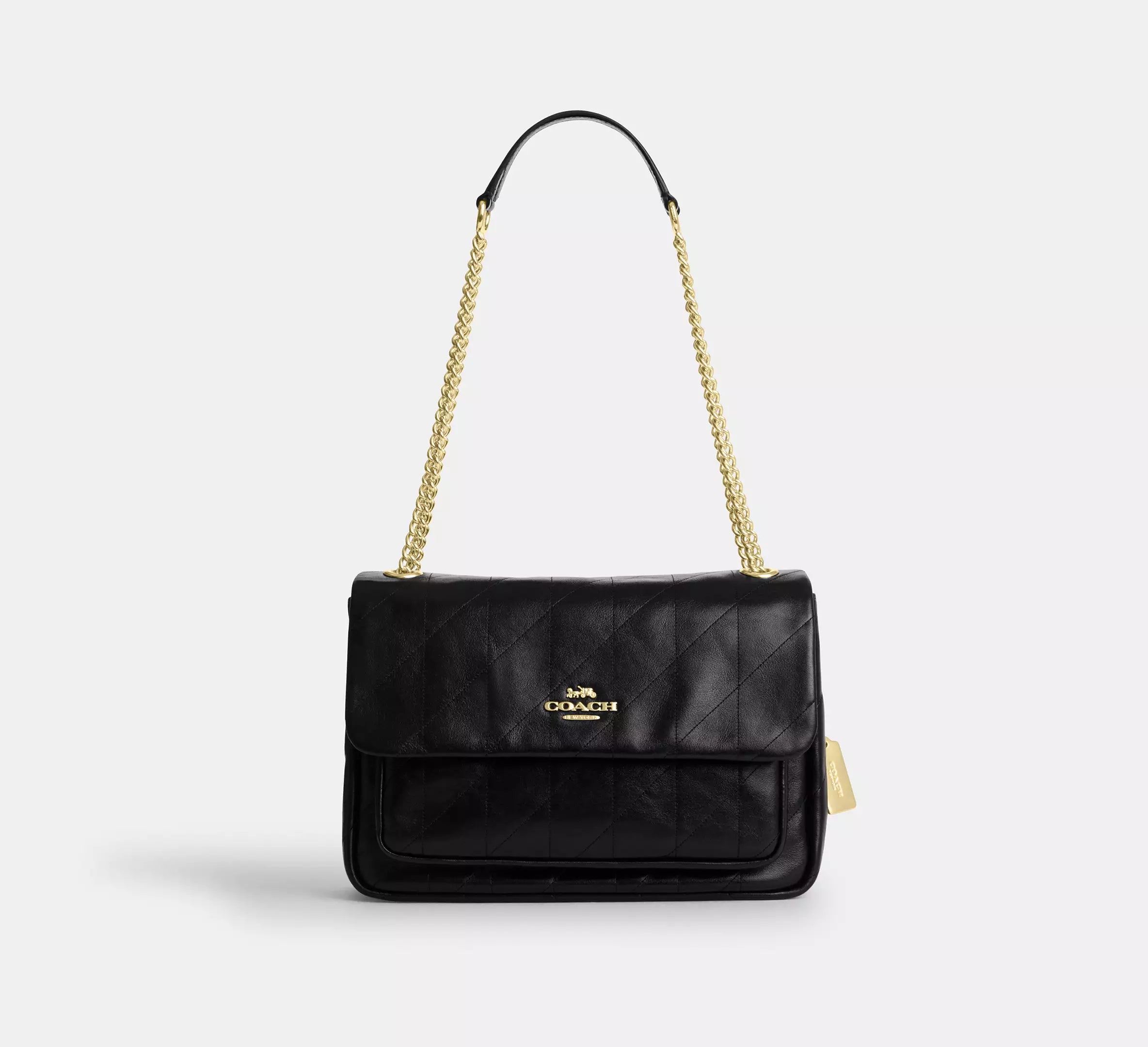 Coach Evelyn Large Shoulder Bag With Quilting - Gold/Black