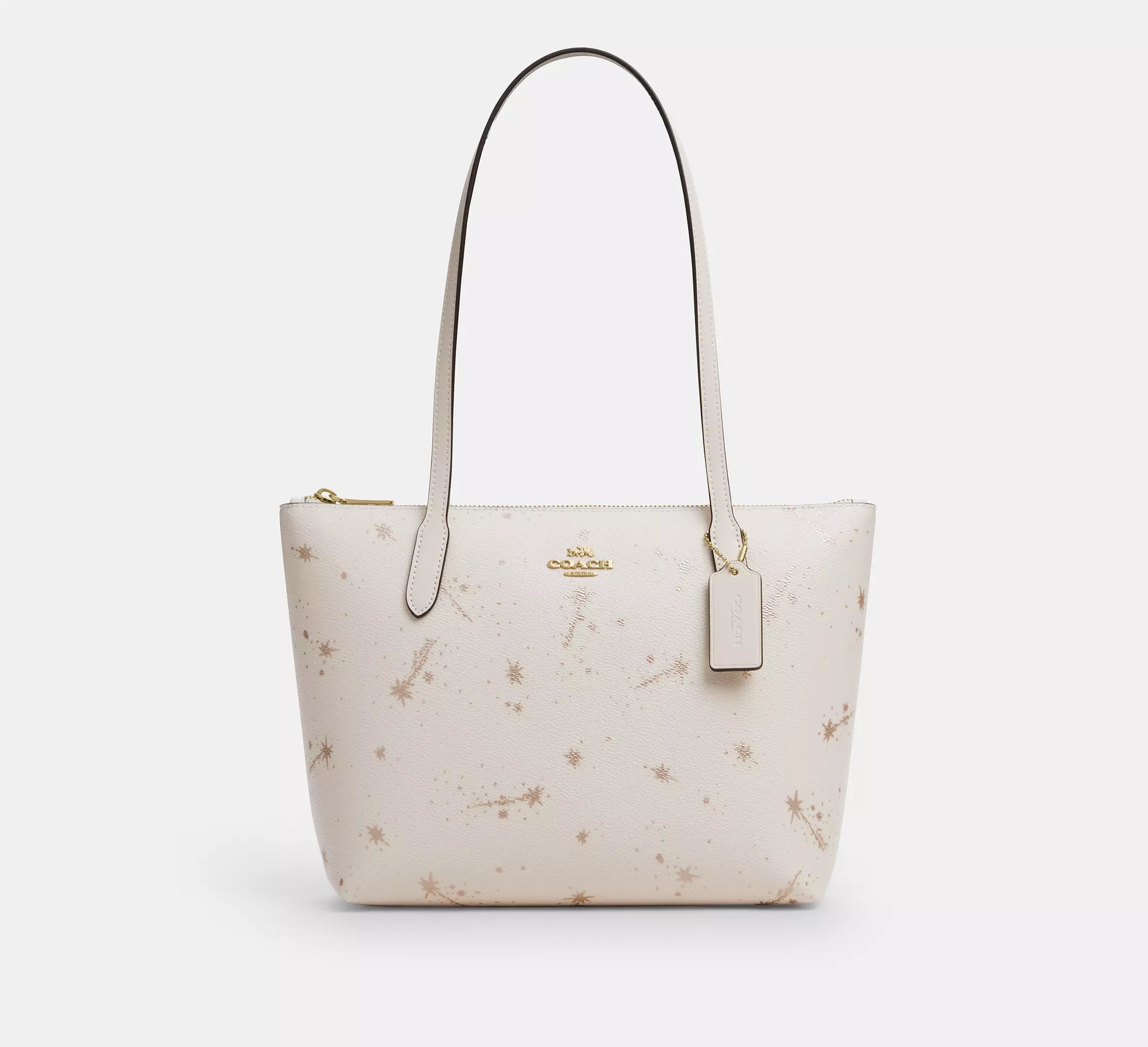 Coach Fiona Zip Tote Bag With Star Print - Gold/Chalk Multi