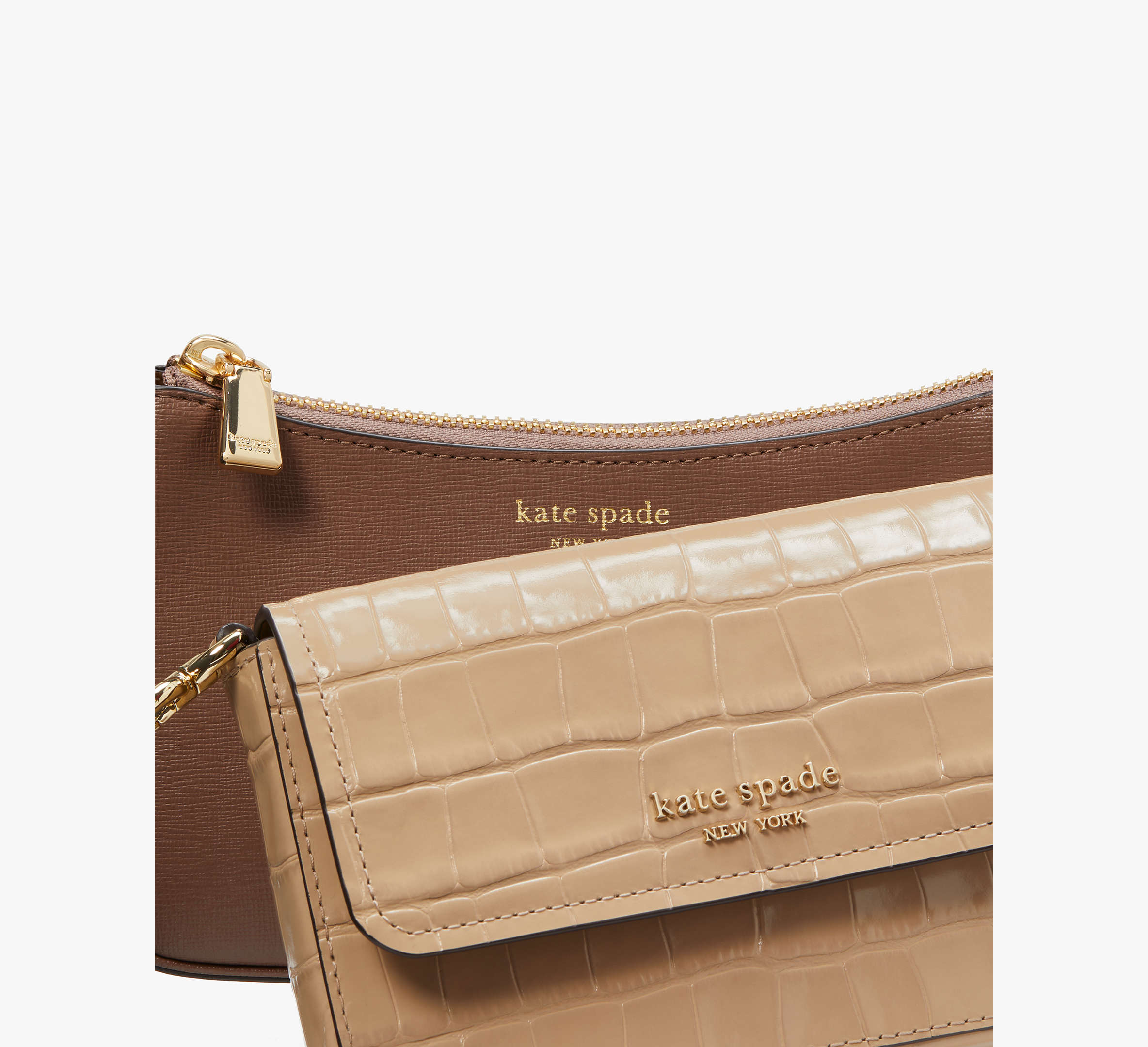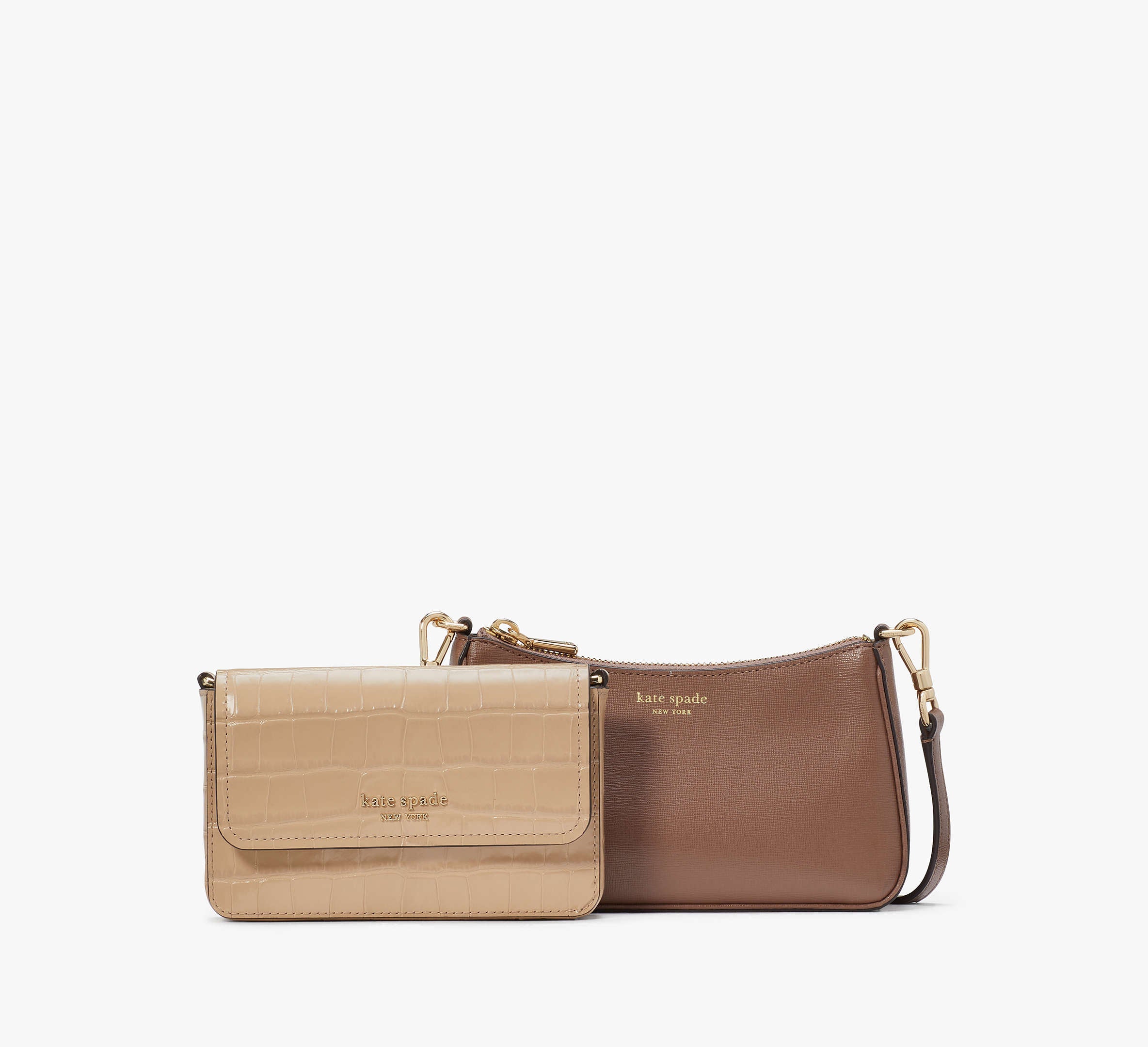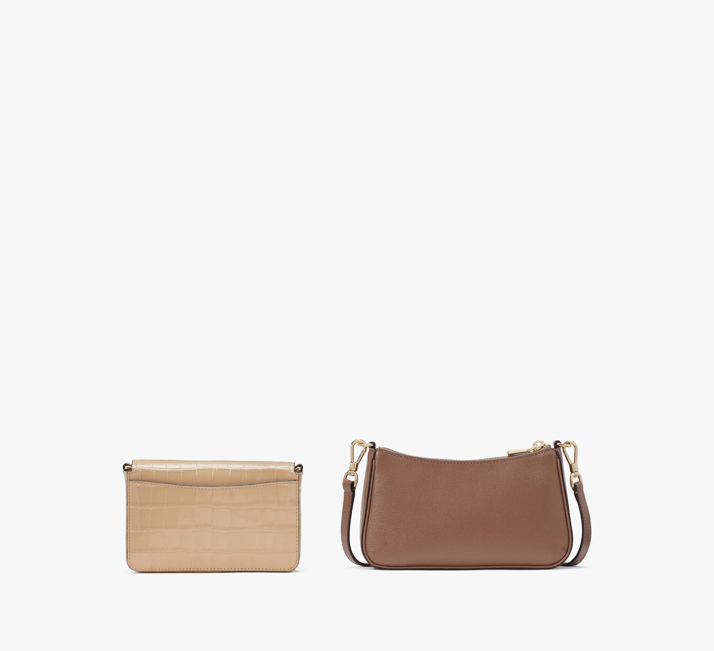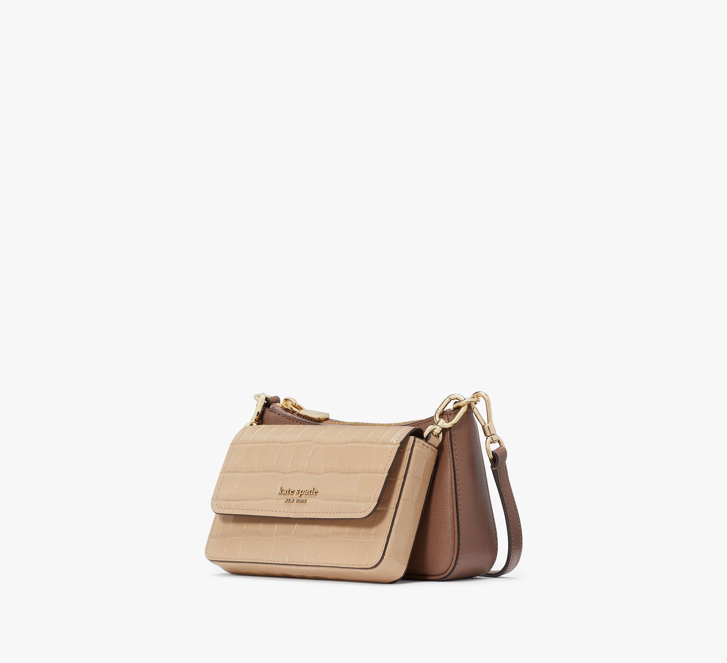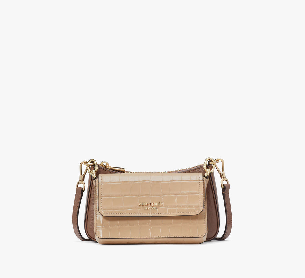 Kate Spade Double Up Croc Embossed Crossbody - Warm Acorn Multi