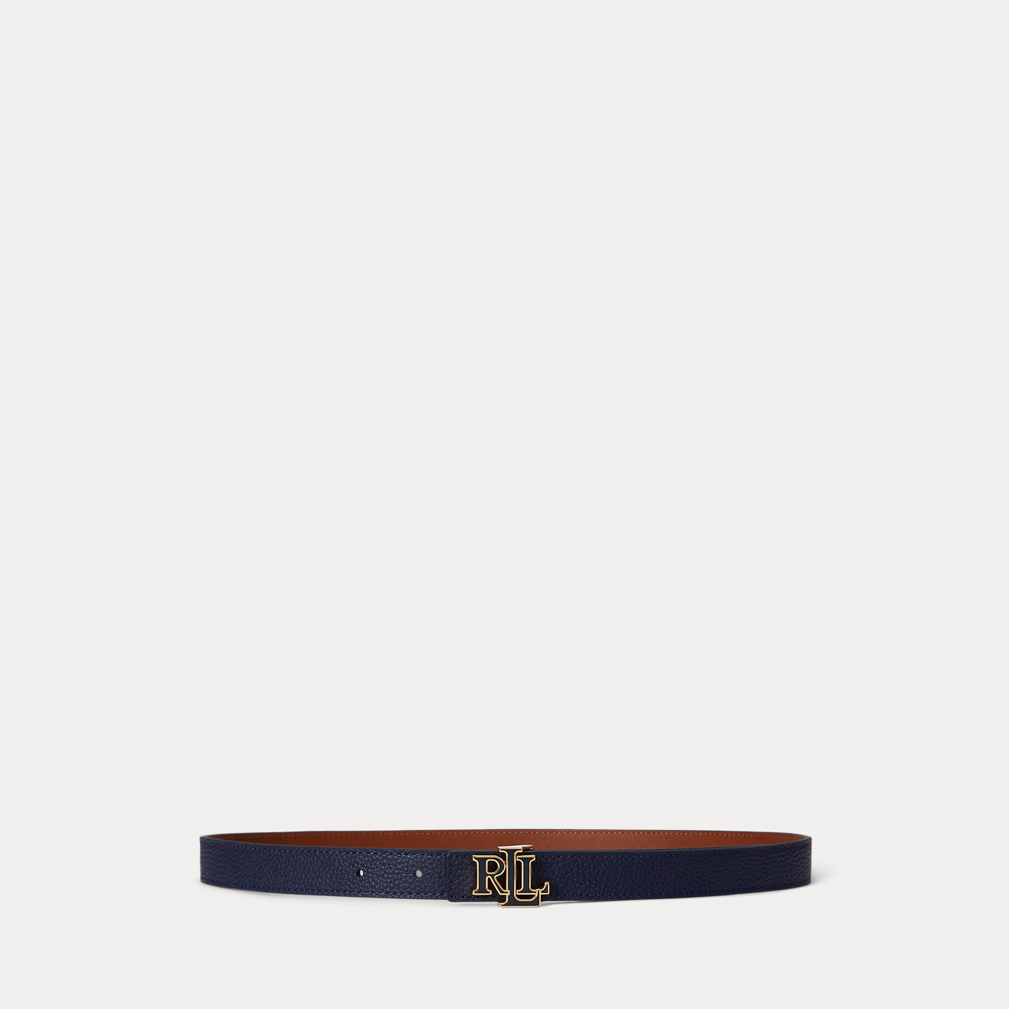 Ralph Lauren Oval-Logo Reversible Leather Skinny Belt Black Tan