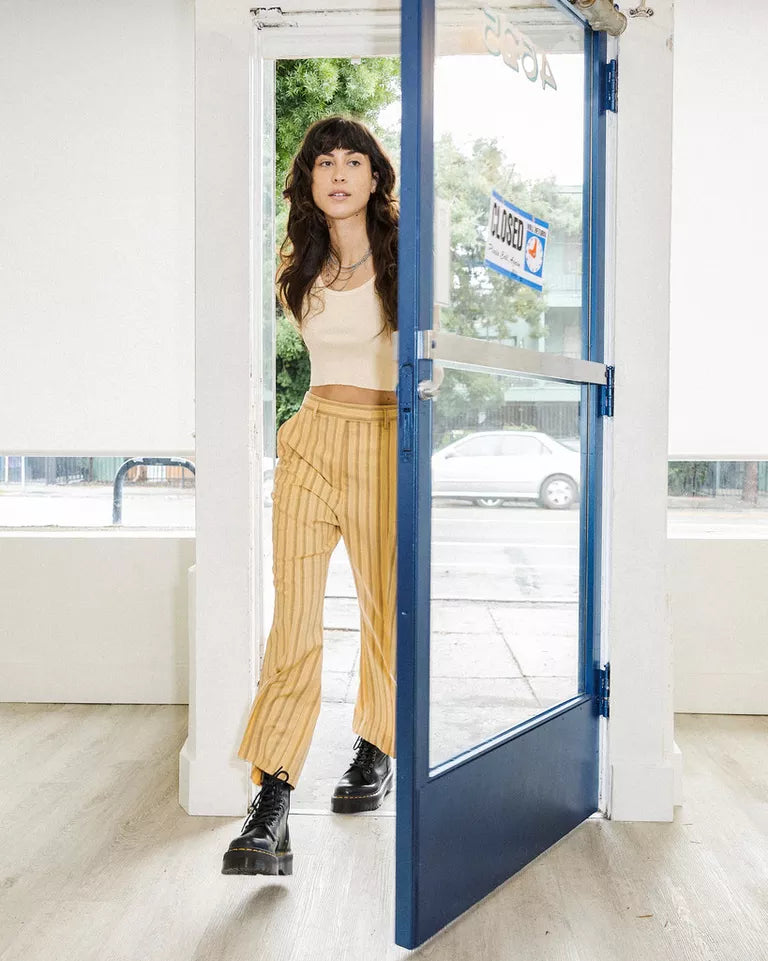 Boyunu uzat. Jadon bot, Dr. Martens’in 6’dan fazla yıllık DNA’sını alıp, benzersiz ve dikkat çekici bir platform siluetine dönüştürüyor. Parlak ve düz deriden üretilen bu botu, istediğin gibi çizip parlatabilirsin. Kendine özgü dişli taban deseni ve sarı dikişlerle çevrili tabanı dikkat çeker. Botun üst kısmında siyah ve sarı topuk halkası bulunur. İç tarafta pratik bir fermuar vardır — her kıyafette hareket halindeyken tarzını yansıtman için.