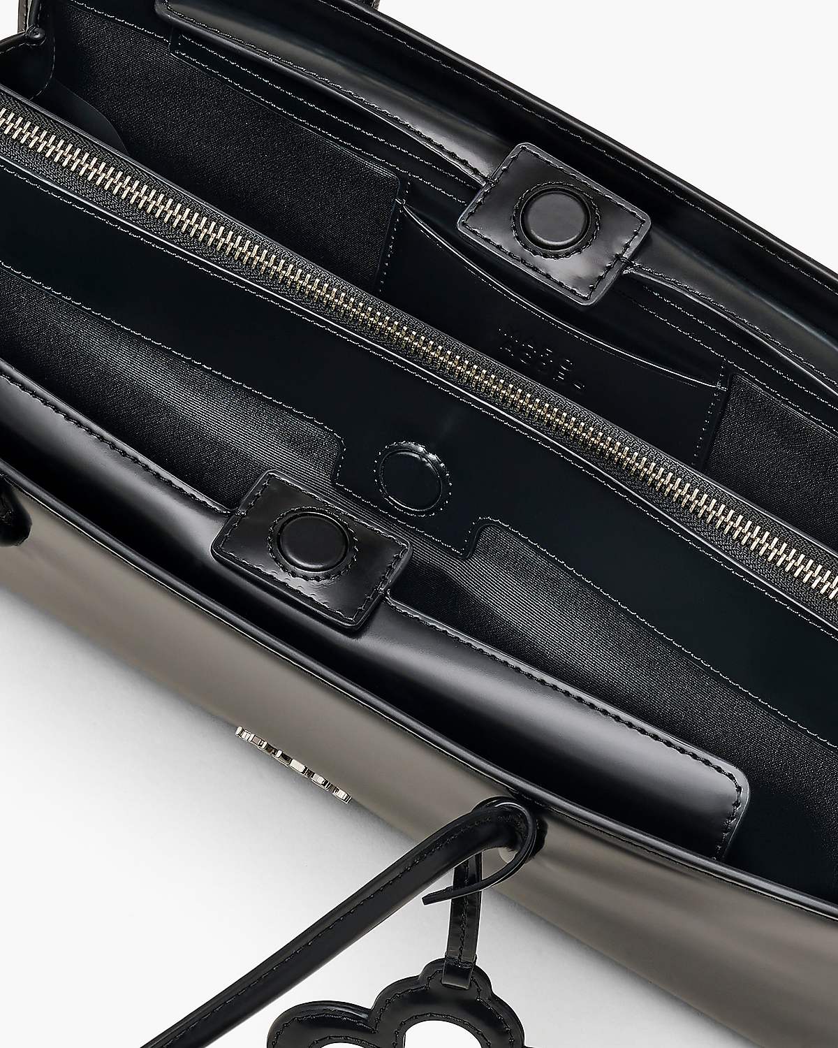 Sabit papatya şeklindeki aynalı süs, Marc Jacobs’a özgü eğlenceli bir detay sunar – dışarıdayken hızlı makyaj tazelemek için idealdir.