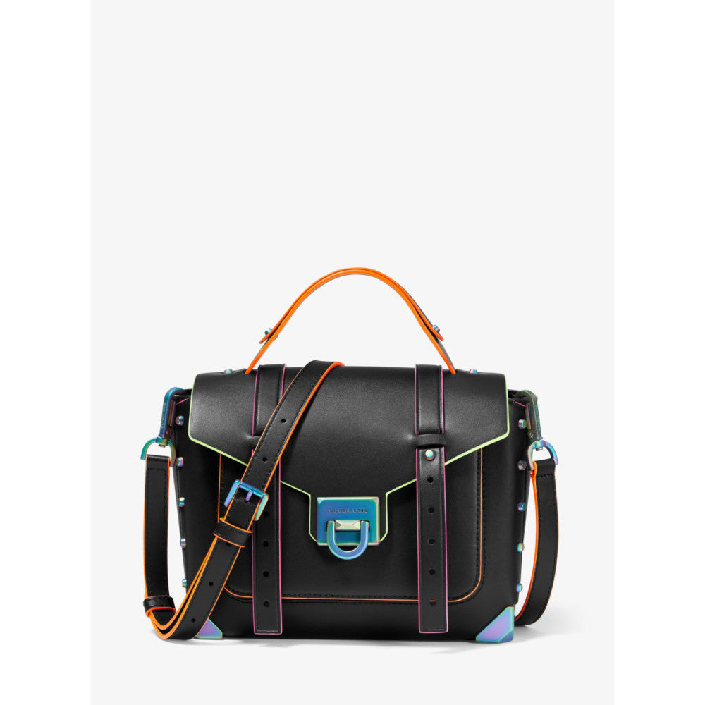Michael Kors Manhattan Medium Contrast-Trim Leather Satchel BLACK Kadın Çanta