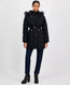 Standart yaka ve iç katman (bib); çıkarılabilir yapay kürk detaylı sabit kapüşon; önden fermuar kapama ve üzerinde düğmeli pat