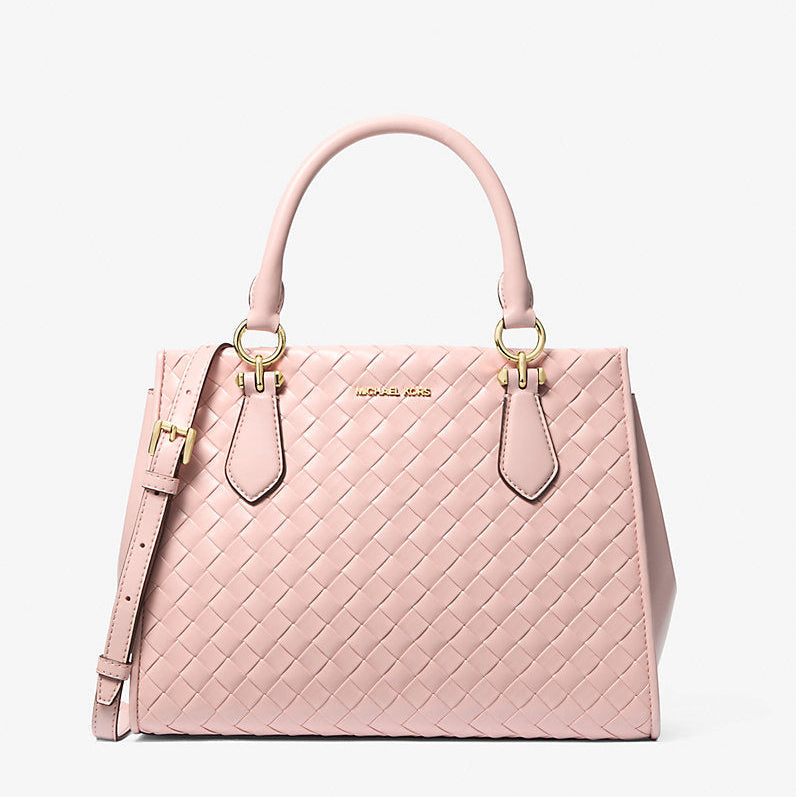 Michael Kors Marilyn Medium Woven Satchel-POWDER BLUSH