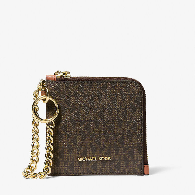 Michael Kors Jet Set Travel Signature Logo Chain Wallet-BROWN