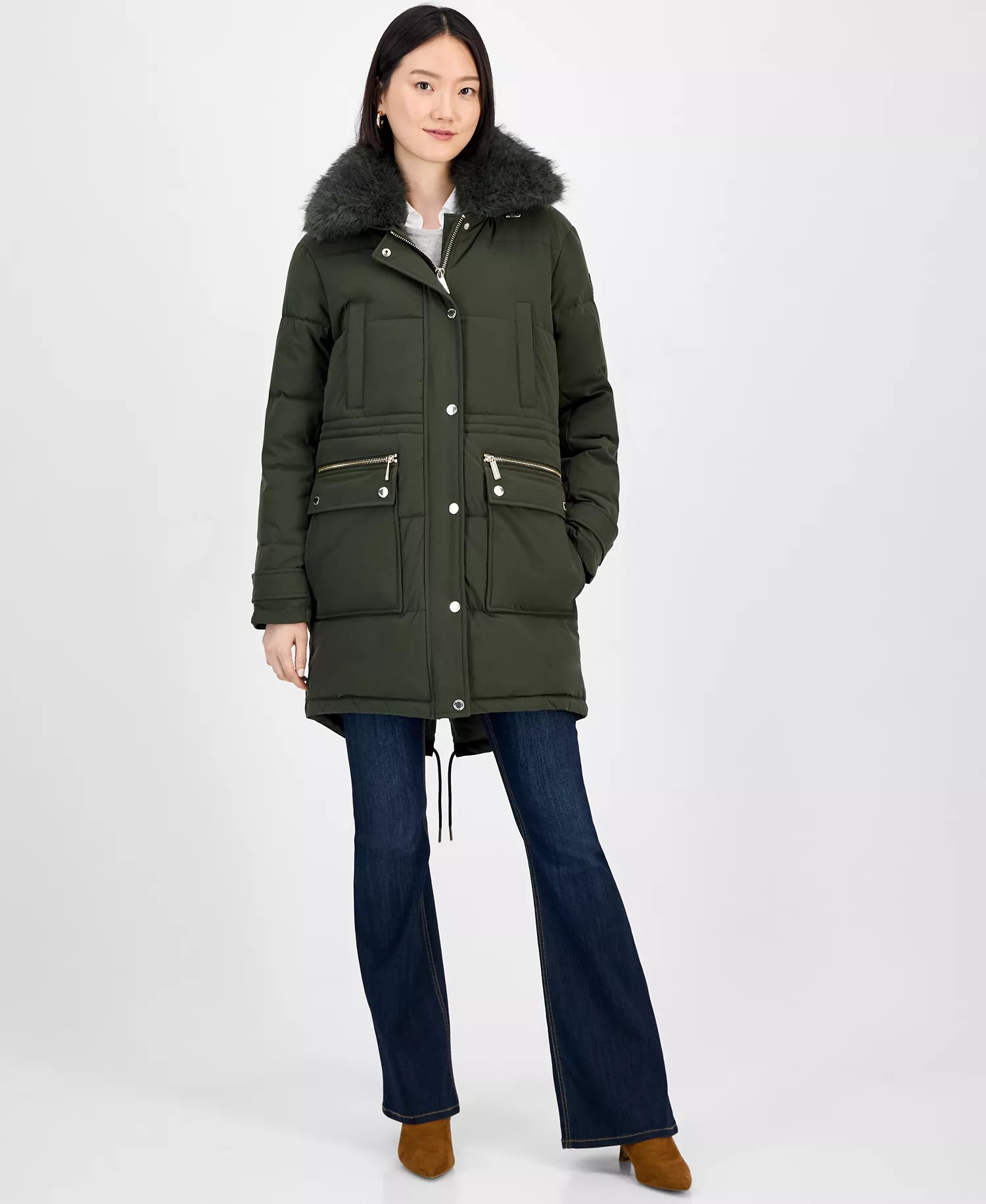 Michael Kors Women's Collared Button-Front Coat 1-Ivy