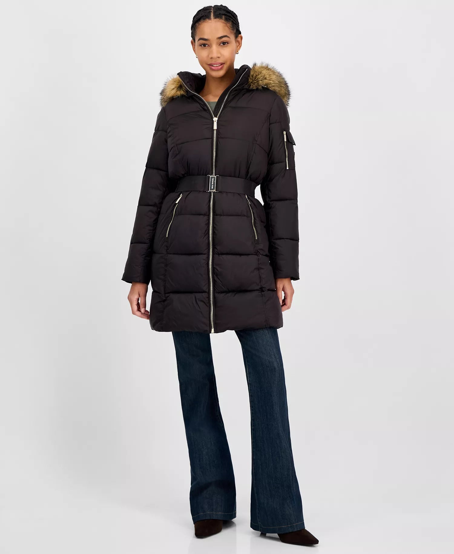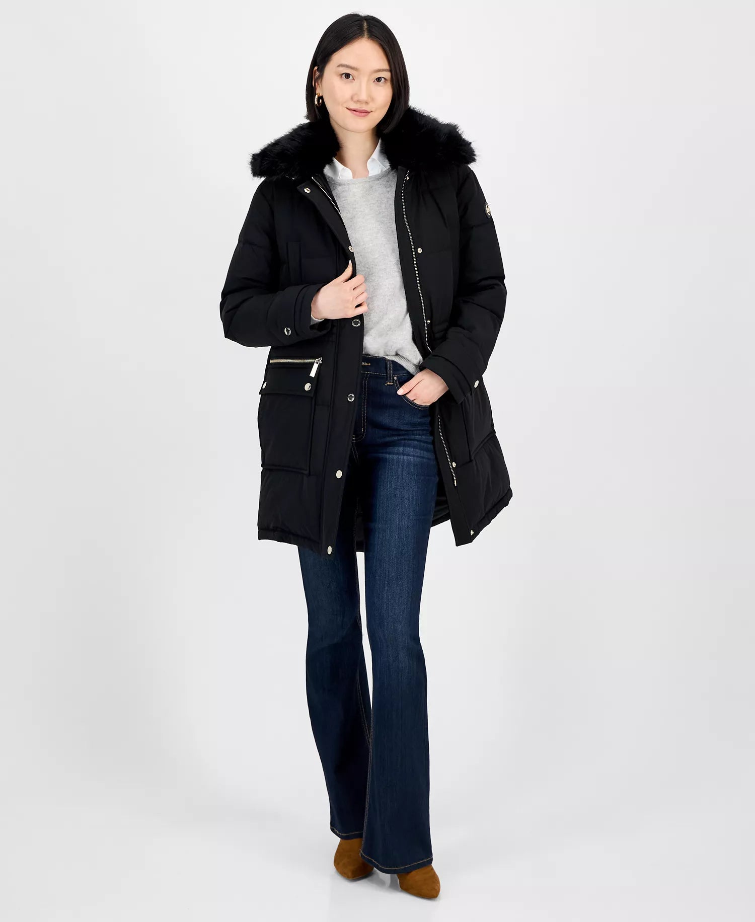 Michael Kors Women's Collared Button-Front Coat 1-Black