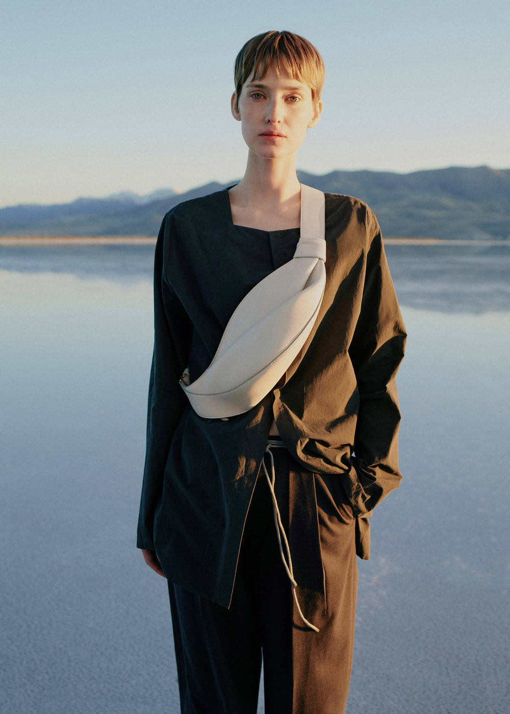 Nappa deriden üretilen Neyu modeli, ortadaki bir kat etrafında yapılandırılmış dökümlü deri detaylara sahiptir. Kalıbı, vücuda tam oturacak ve gün boyunca hareketlerine uyum sağlayacak şekilde tasarlanmıştır. Geniş omuz askısı, çantanın çapraz veya omuzda taşınmasına olanak tanıyacak şekilde ayarlanabilir.