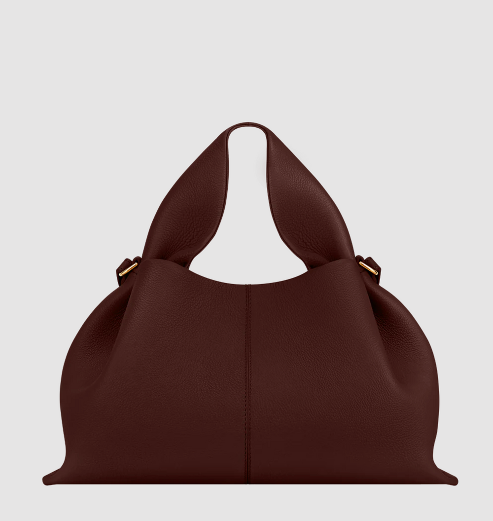 Leathers selected by Polène are sourced from certified European tanneries and require minimal maintenance. A few steps can be taken to maintain the original appearance. Avoid prolonged exposure to direct light or heat, and keep away from water, greasy substances, perfumes, and cosmetics. Use caution with dark or new clothing, as the dye may bleed.