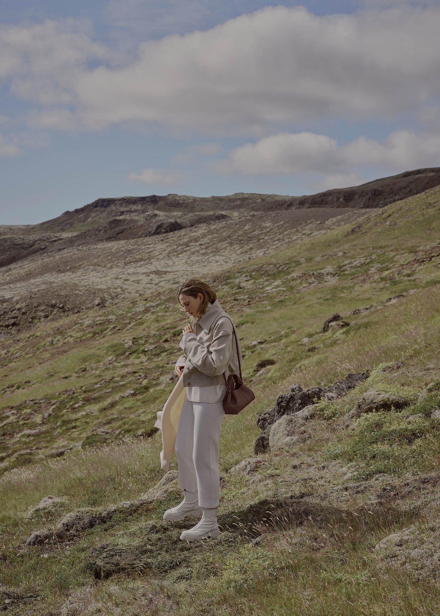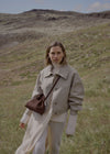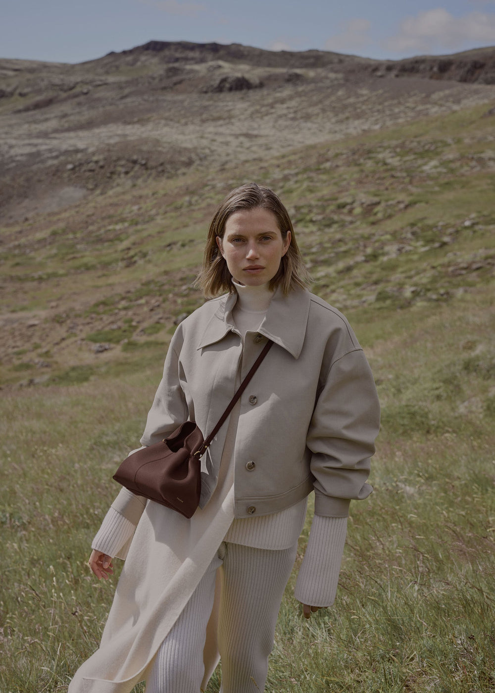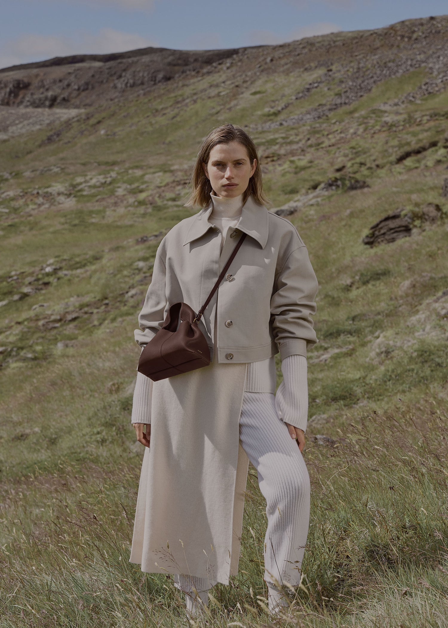 The “Numéro Neuf Mini” features an organic design that strikes the right balance between flexibility and hold. Its draped leather is held in place by hand stitching.