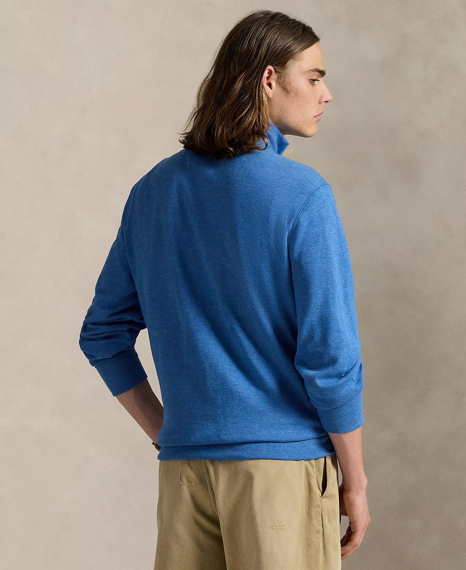Ralp Lauren Men's Luxury Jersey Quarter-Zip Pullover Sweater-Fresh Surf Heather