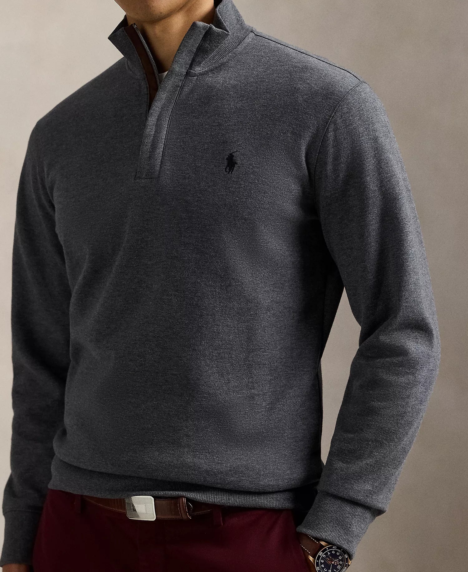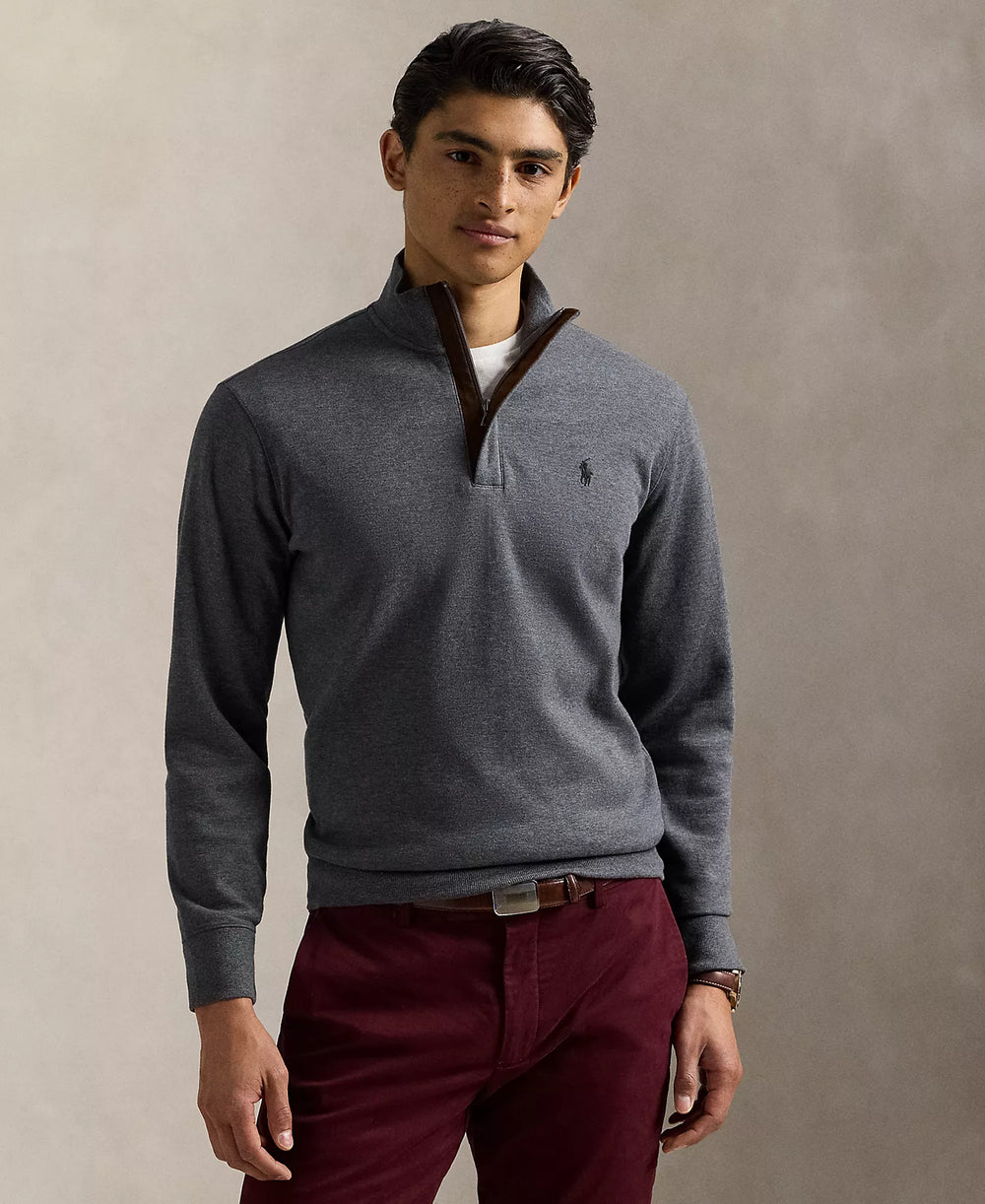 Ralp Lauren Men's Luxury Jersey Quarter-Zip Pullover Sweater-Barclay Heather