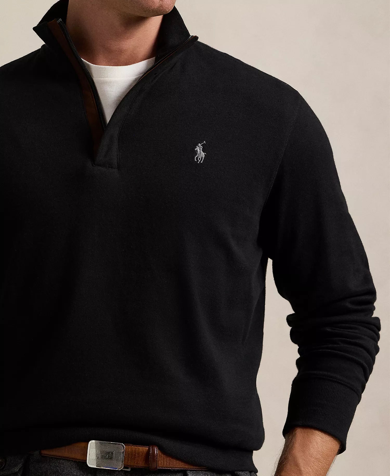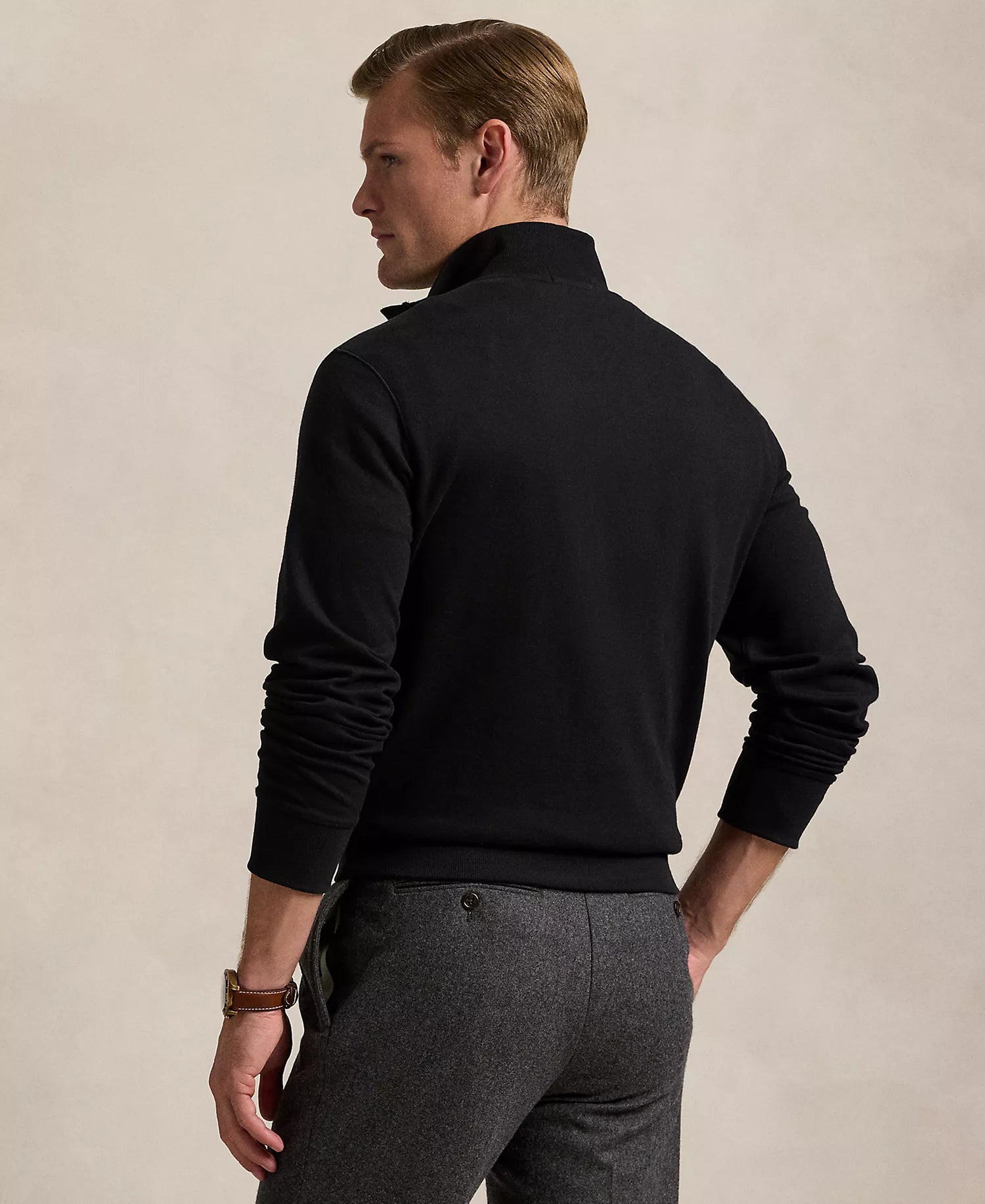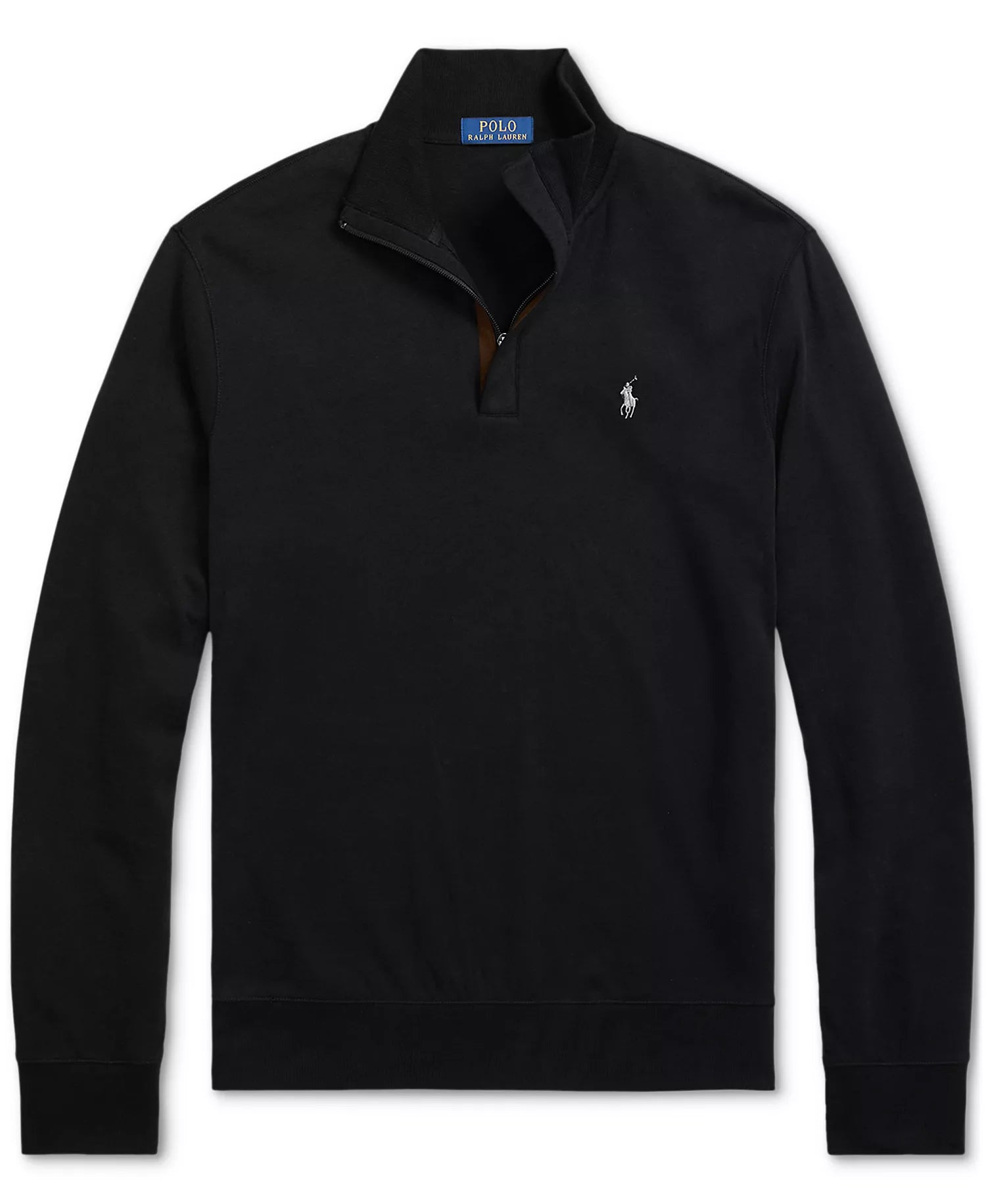 Ralp Lauren Men's Luxury Jersey Quarter-Zip Pullover Sweater-Black
