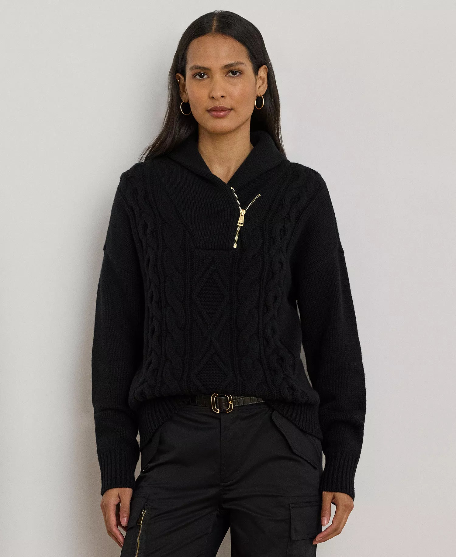 Ralph Lauren Women's Cable Shawl-Collar Quarter-Zip Sweater-Black