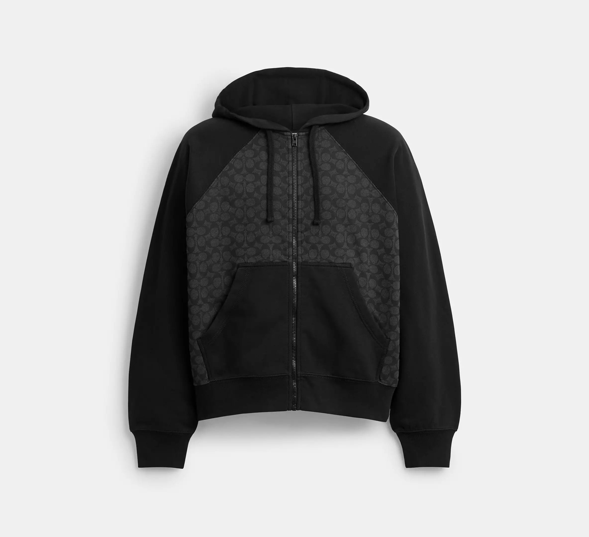 Coach Signature Hoodie In Organic Cotton - Charcoal Signature