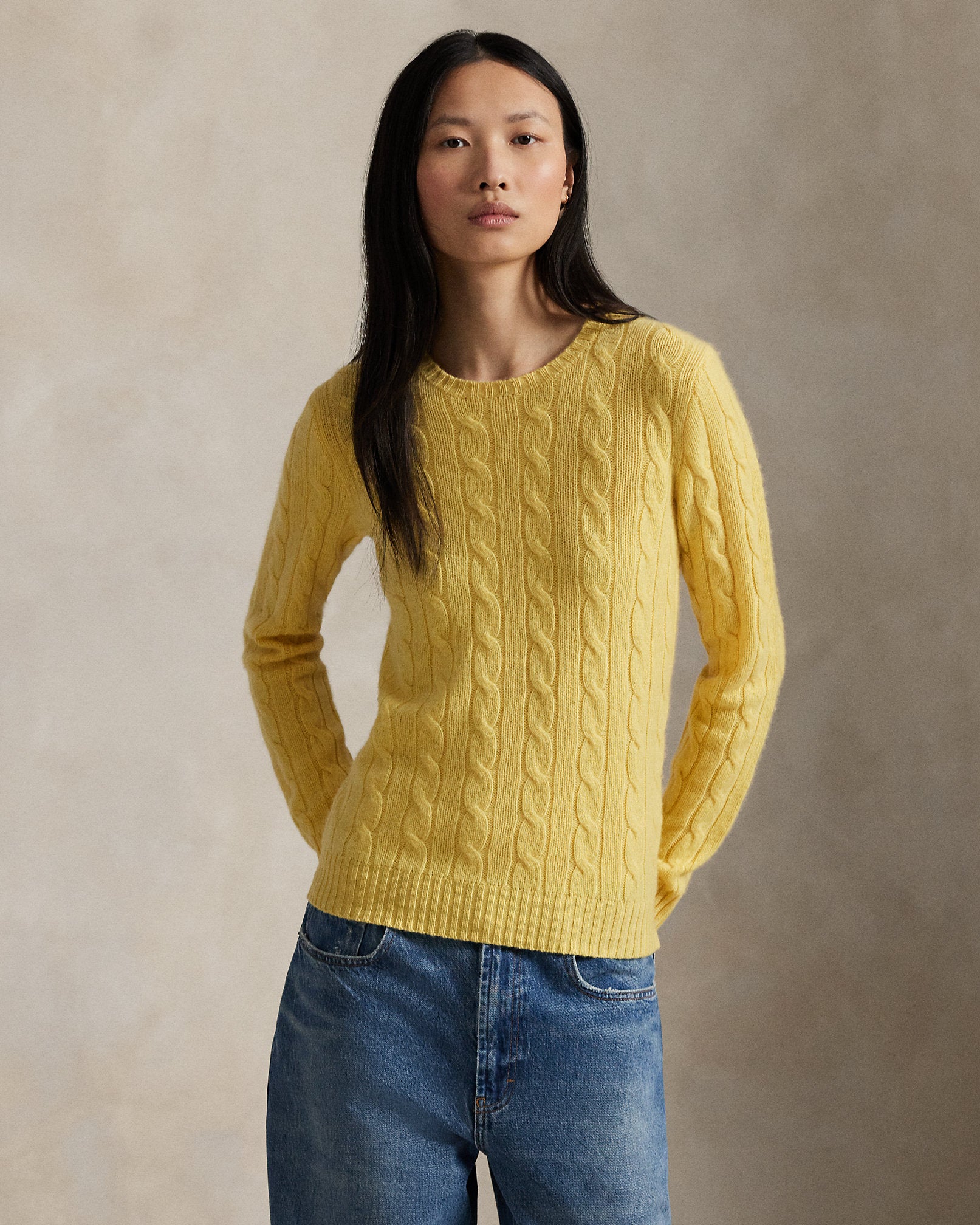 Ralph Lauren Women's Cable-Knit Cashmere Sweater - Fall Yellow