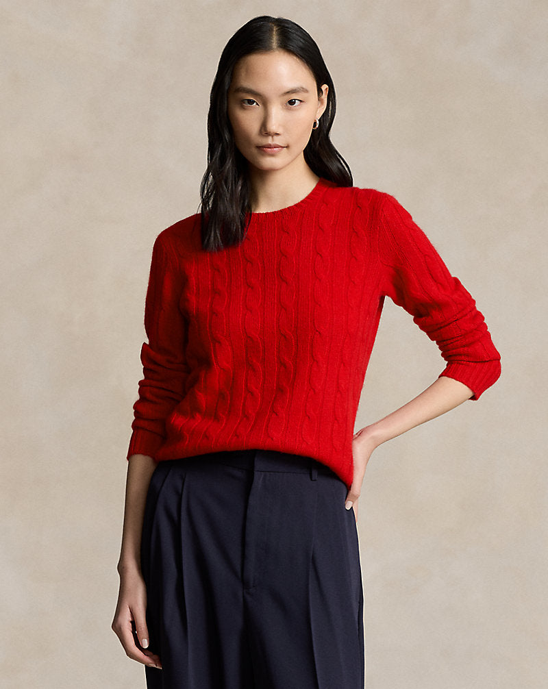 Ralph Lauren Unisex The Iconic Cable-Knit Cashmere Sweater - Park Ave Red
