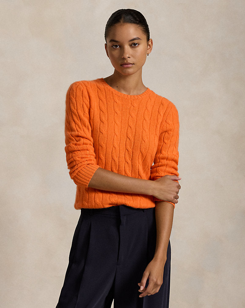 Ralph Lauren Women's Cable-Knit Cashmere Sweater -  Soft Clementine