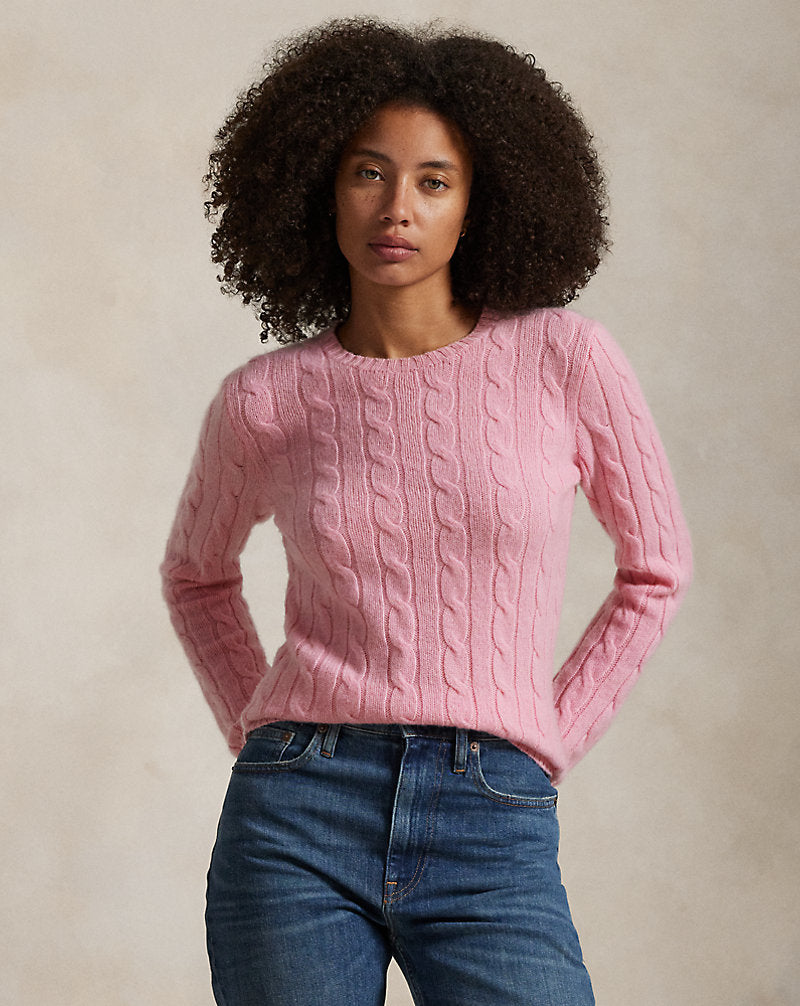 Ralph Lauren Women's Cable-Knit Cashmere Sweater - Carmel Pink