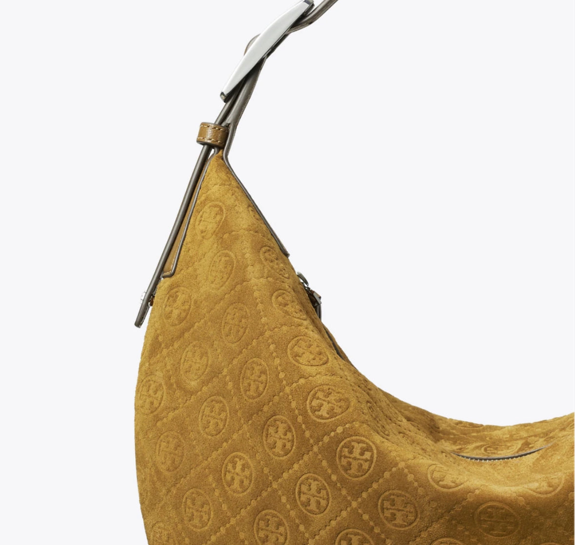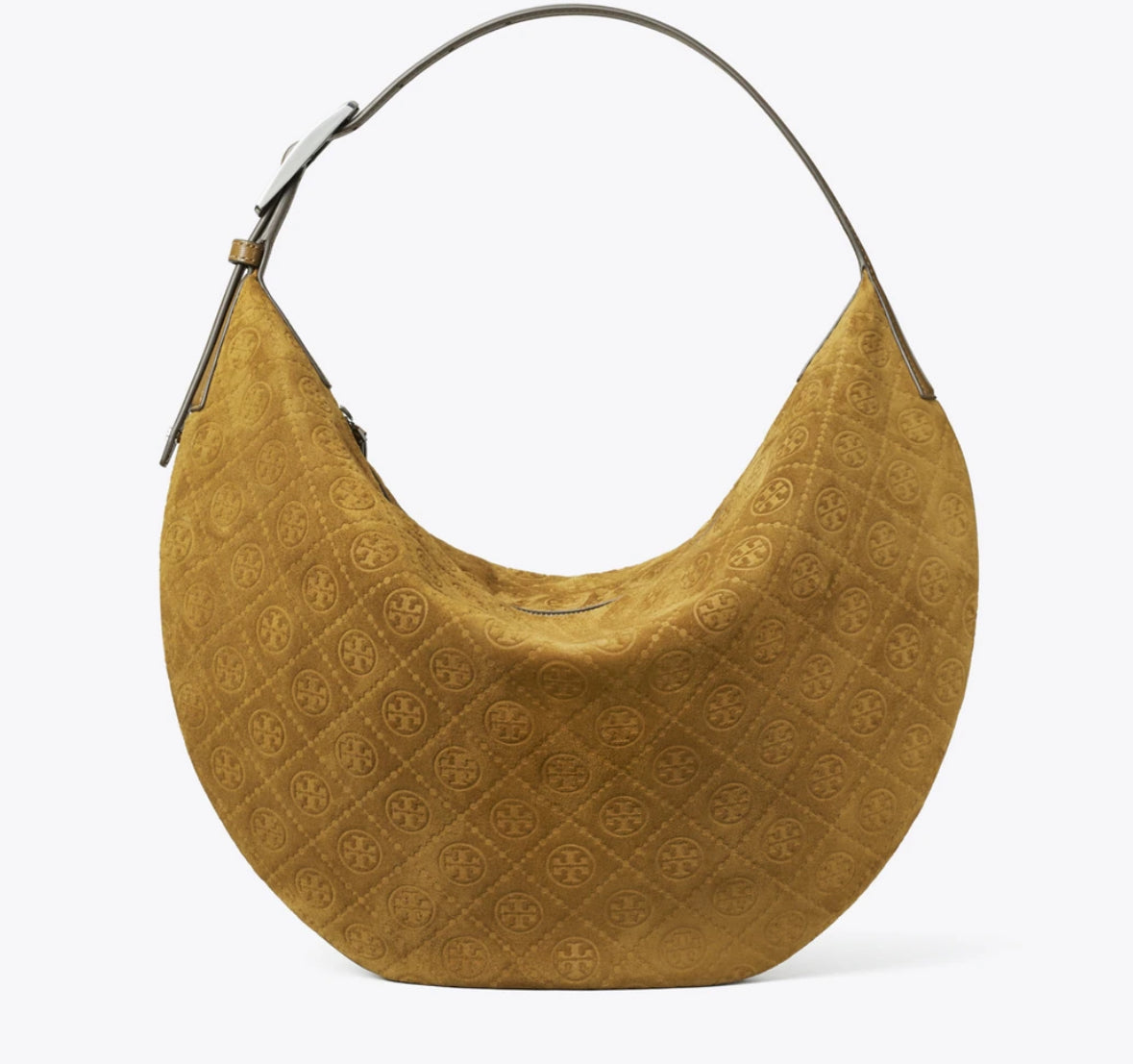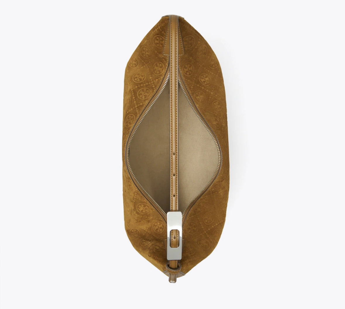 TORY BURCH T MONOGRAM SUEDE BALLOON BAG - Chicory Brown