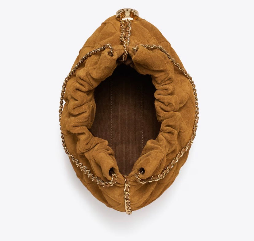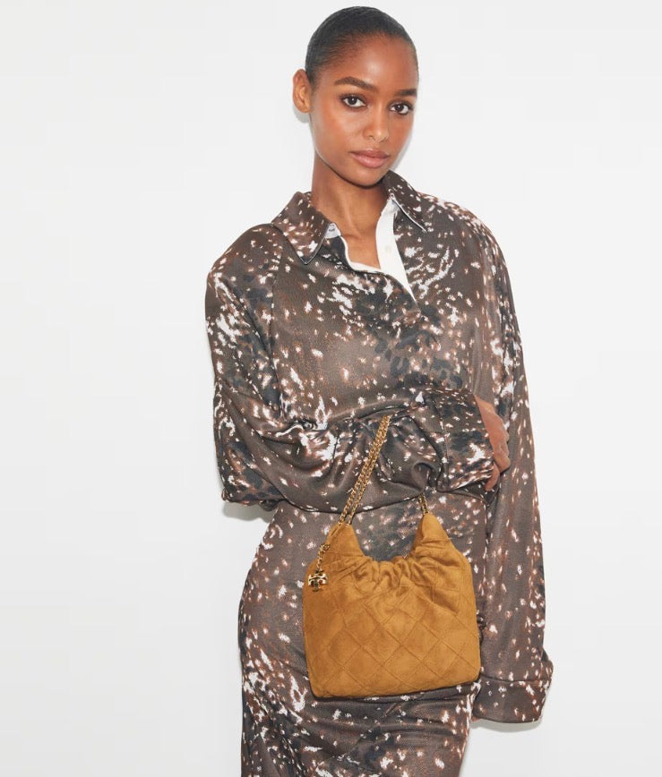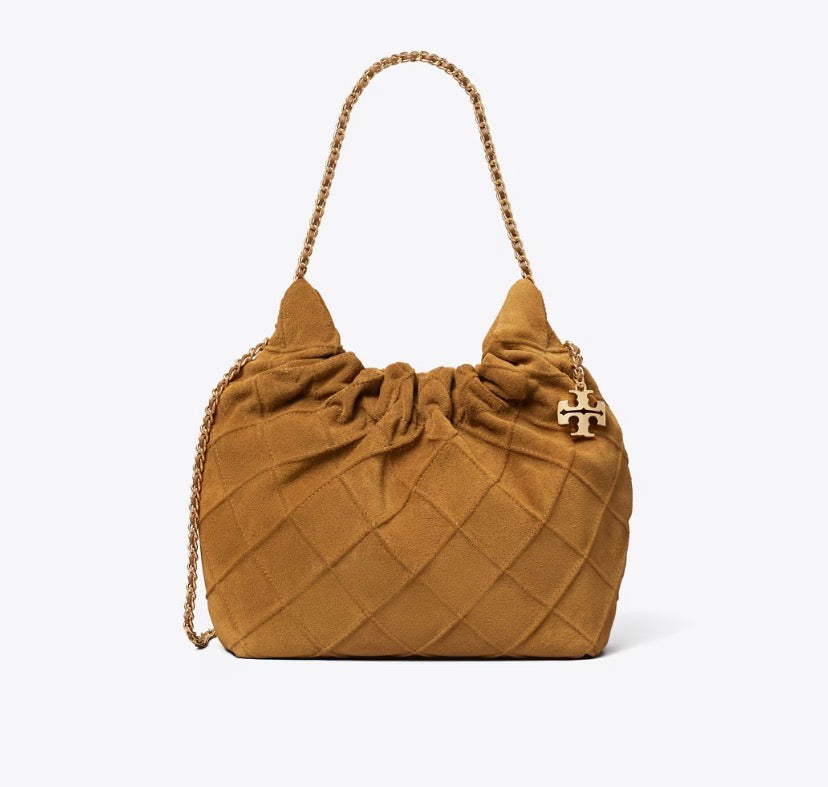 TORY BURCH MINI FLEMING SOFT SUEDE HOBO BAG - chicory brown