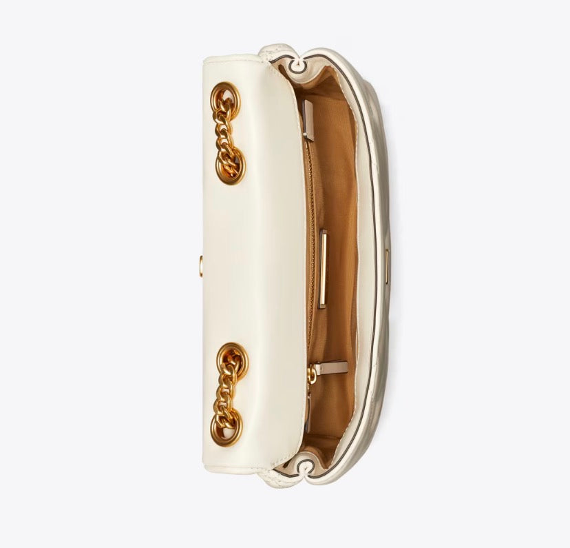 TORY BURCH SMALL KIRA DIAMOND QUILT SHOULDER BAG - warm white