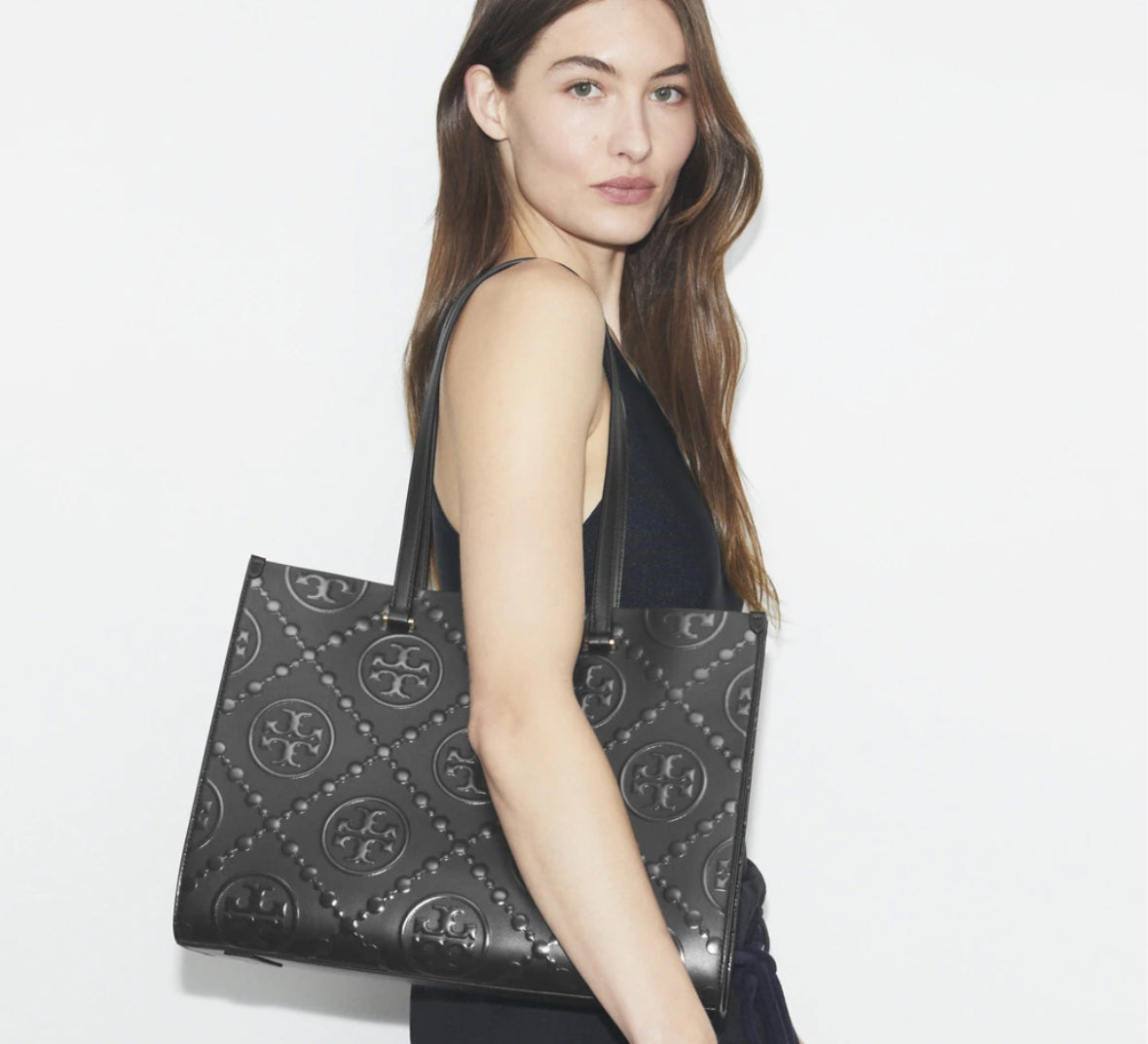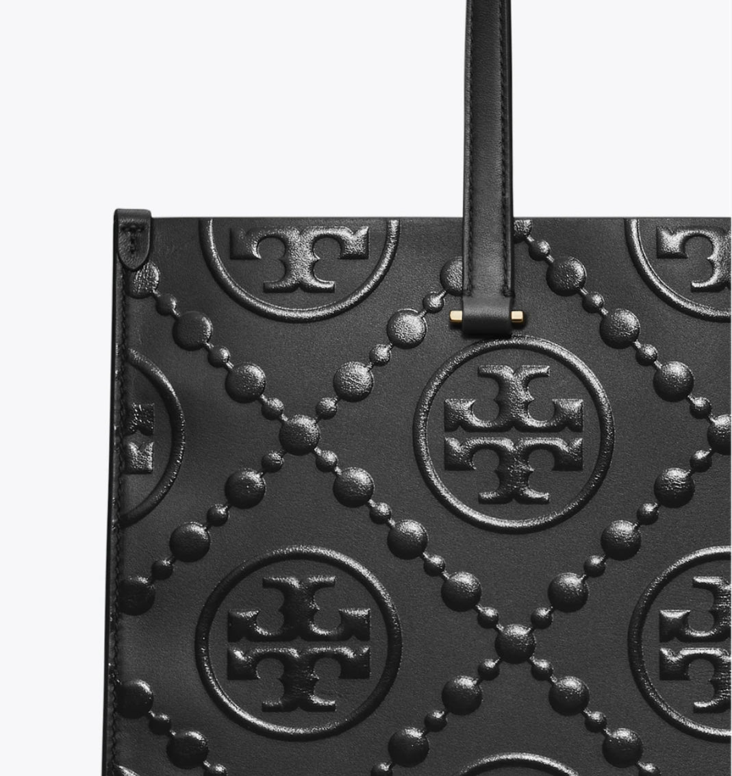 TORY BURCH T MONOGRAM EMBOSSED TOTE-BLACK- BLACK