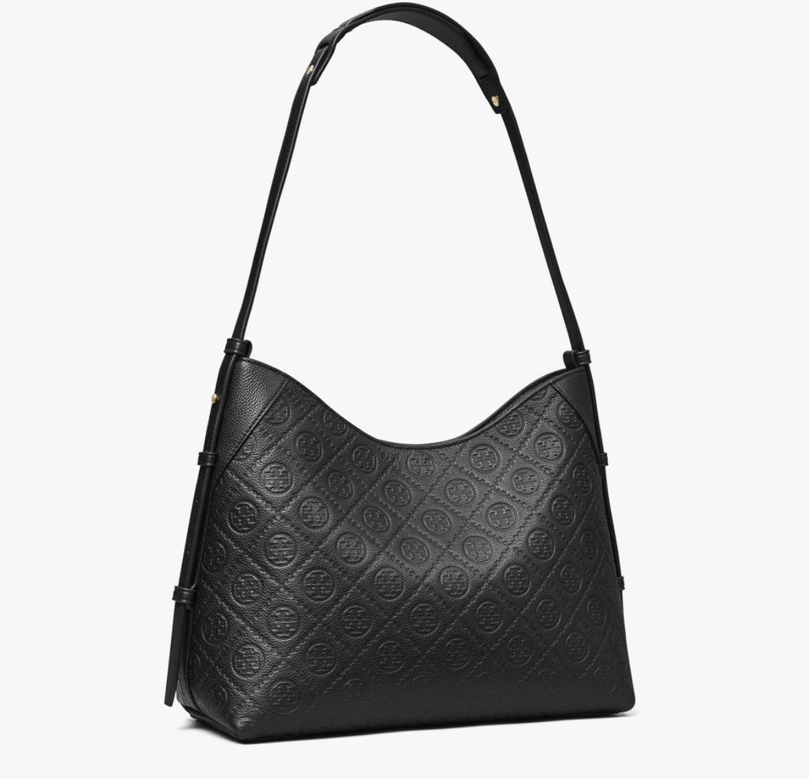 TORY BURCH T MONOGRAM PEBBLED MESSENGER BAG-Black