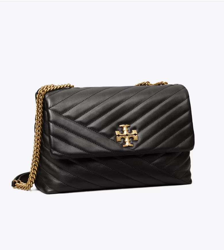 TORY BURCH KIRA CHEVRON CONVERTIBLE SHOULDER BAG - BLACK/ROLLED BRASS