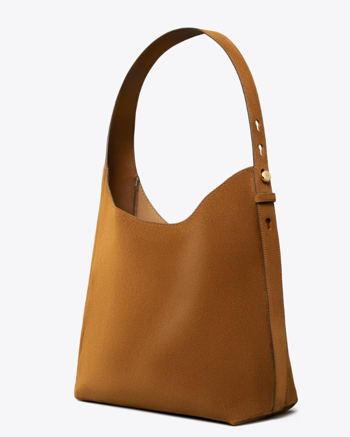 TORY BURCH ROMY SUEDE HOBO BAG - caramel
