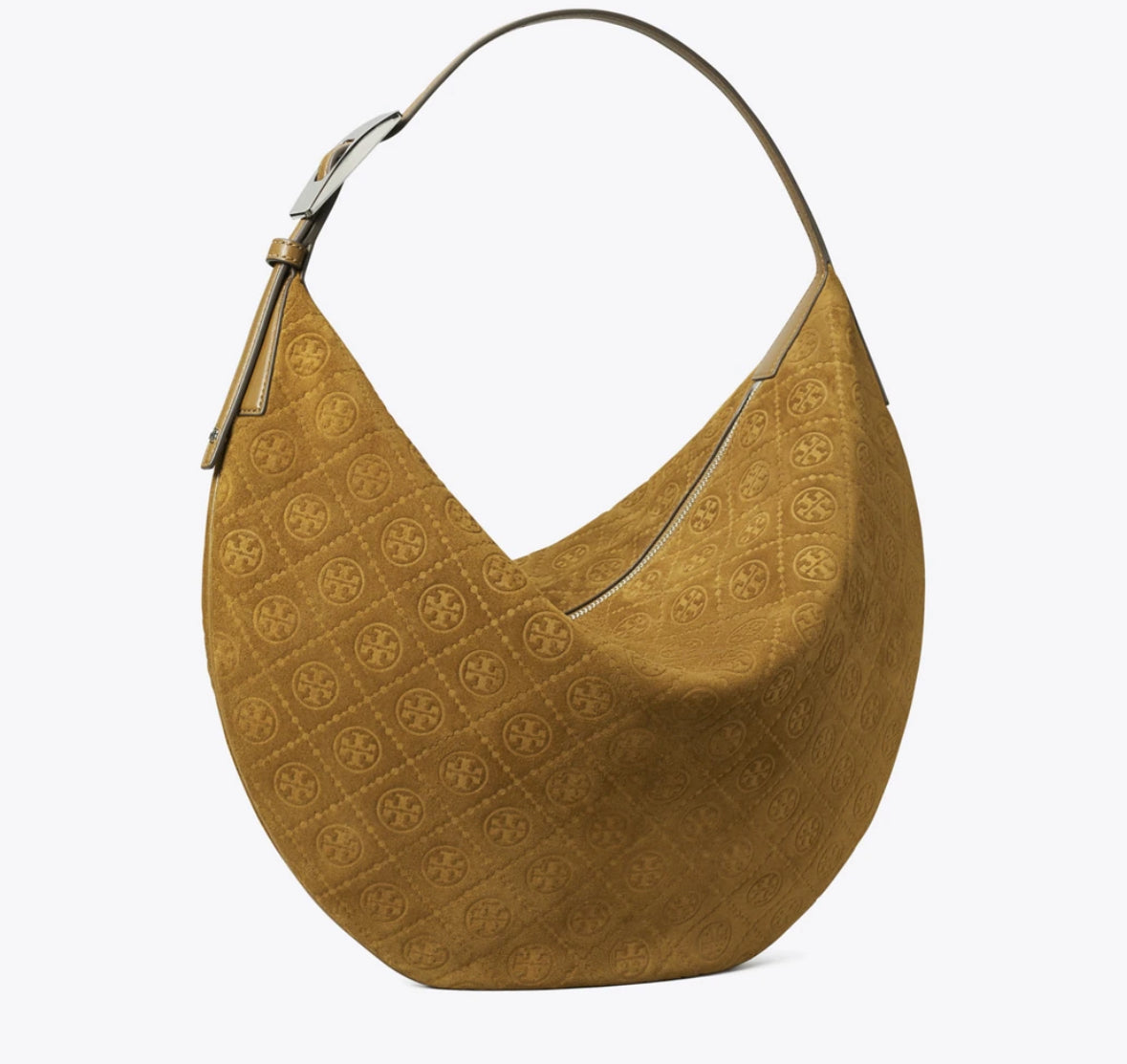 TORY BURCH T MONOGRAM SUEDE BALLOON BAG - Chicory Brown