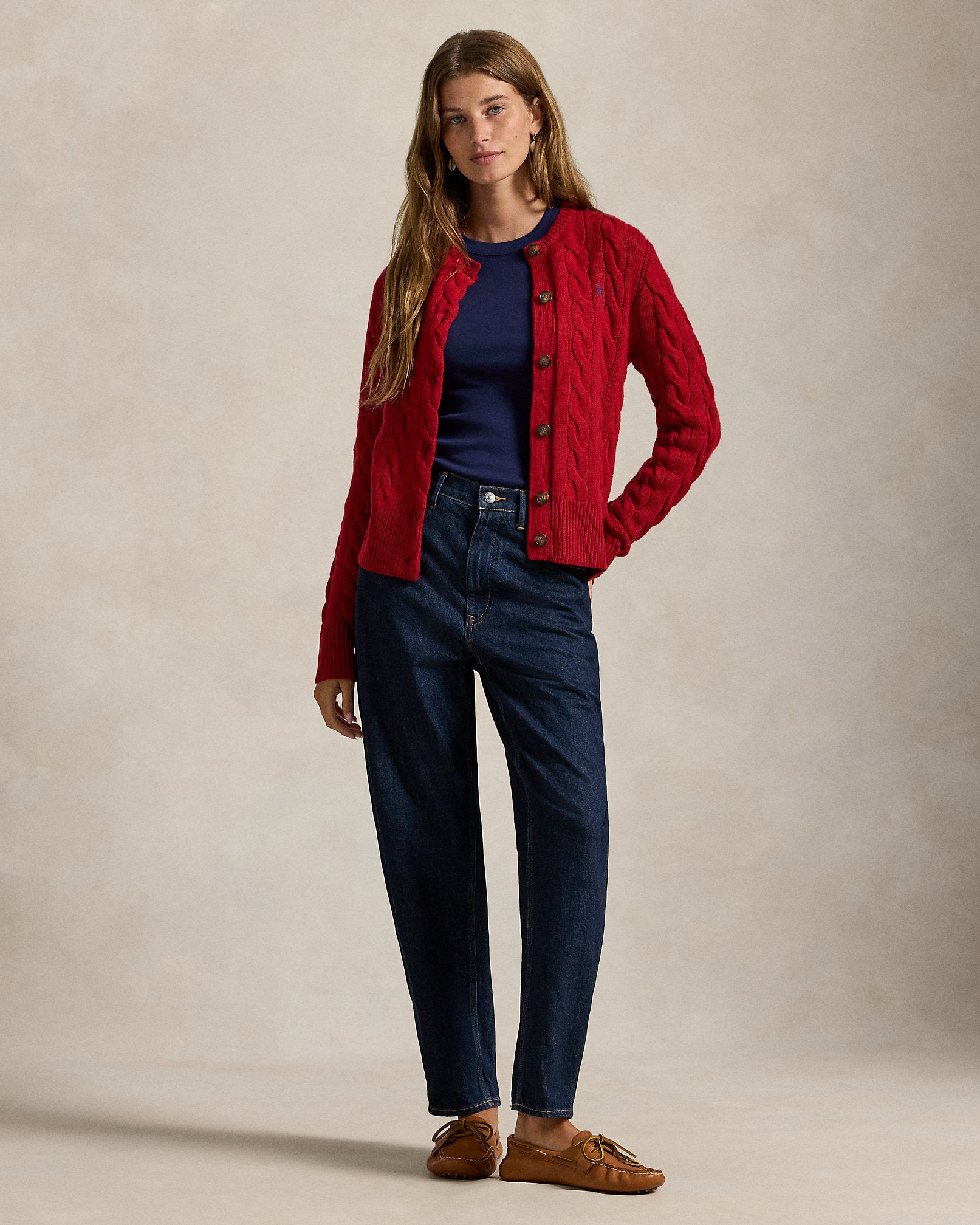 Ralph Lauren Cable-Knit Wool-Cashmere Cardigan- Fireside Red