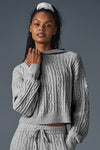 Alo Yoga Cable Knit Winter Bliss Hoodie-Athletic Heather Grey