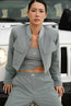 Alo Yoga Cropped Pinstripe Main Character Full Zip Jacket - Lunar Grey/White