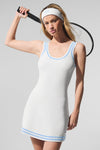 Alo Yoga Tennis Club Sweater Knit Dress- White/Seashell Blue