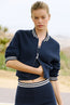 Alo Yoga Tennis Club Sweater Knit Full Zip Jacket- Navy/Ivory