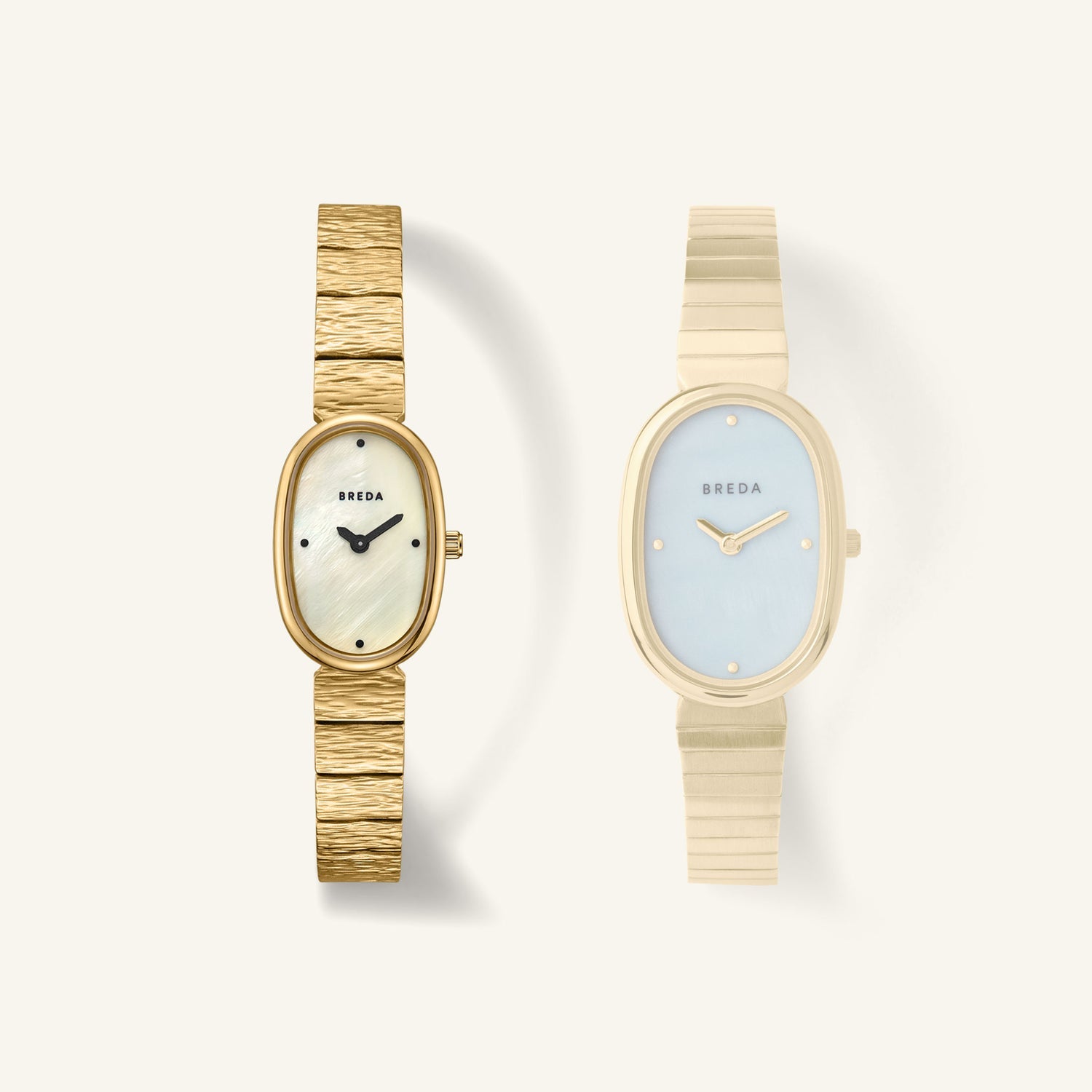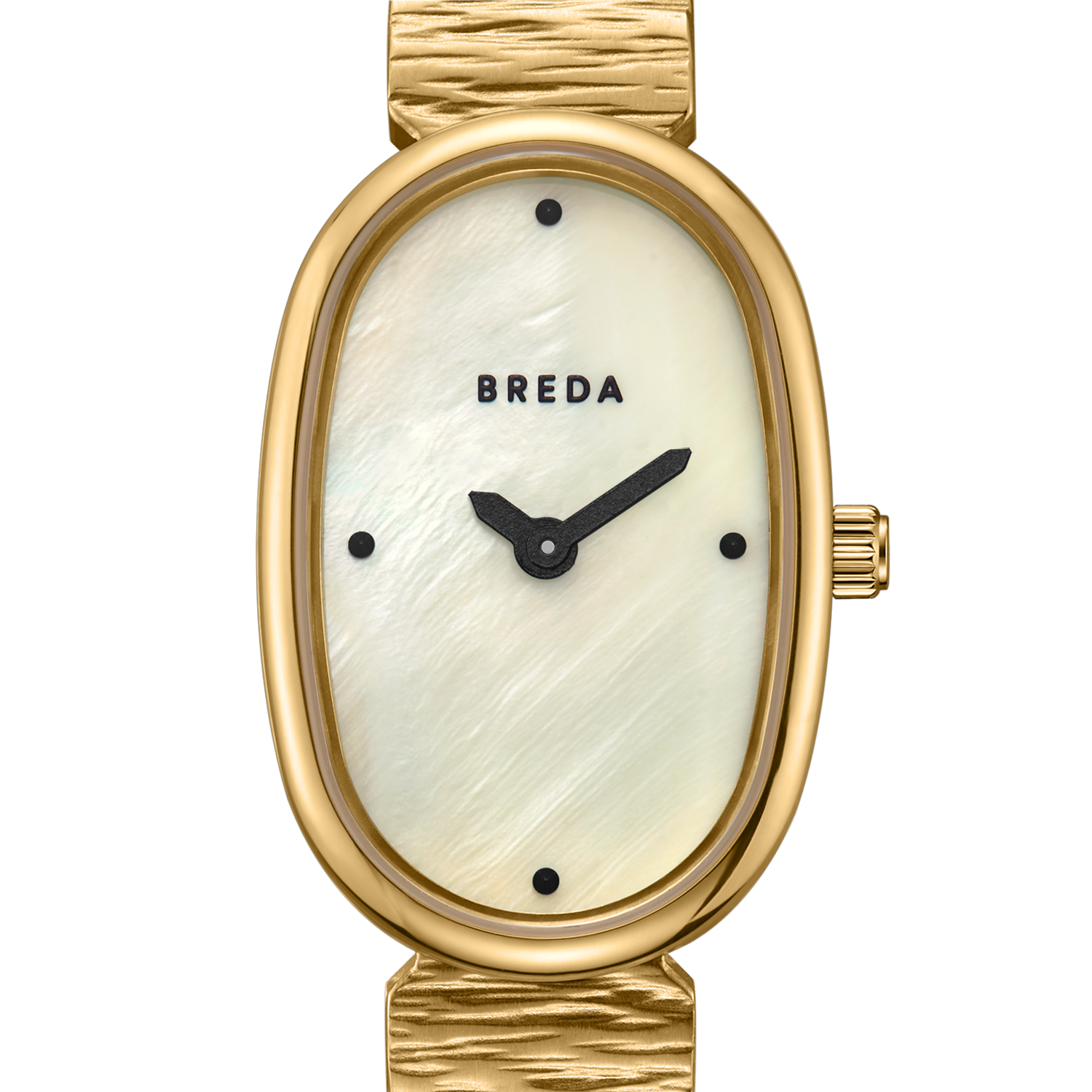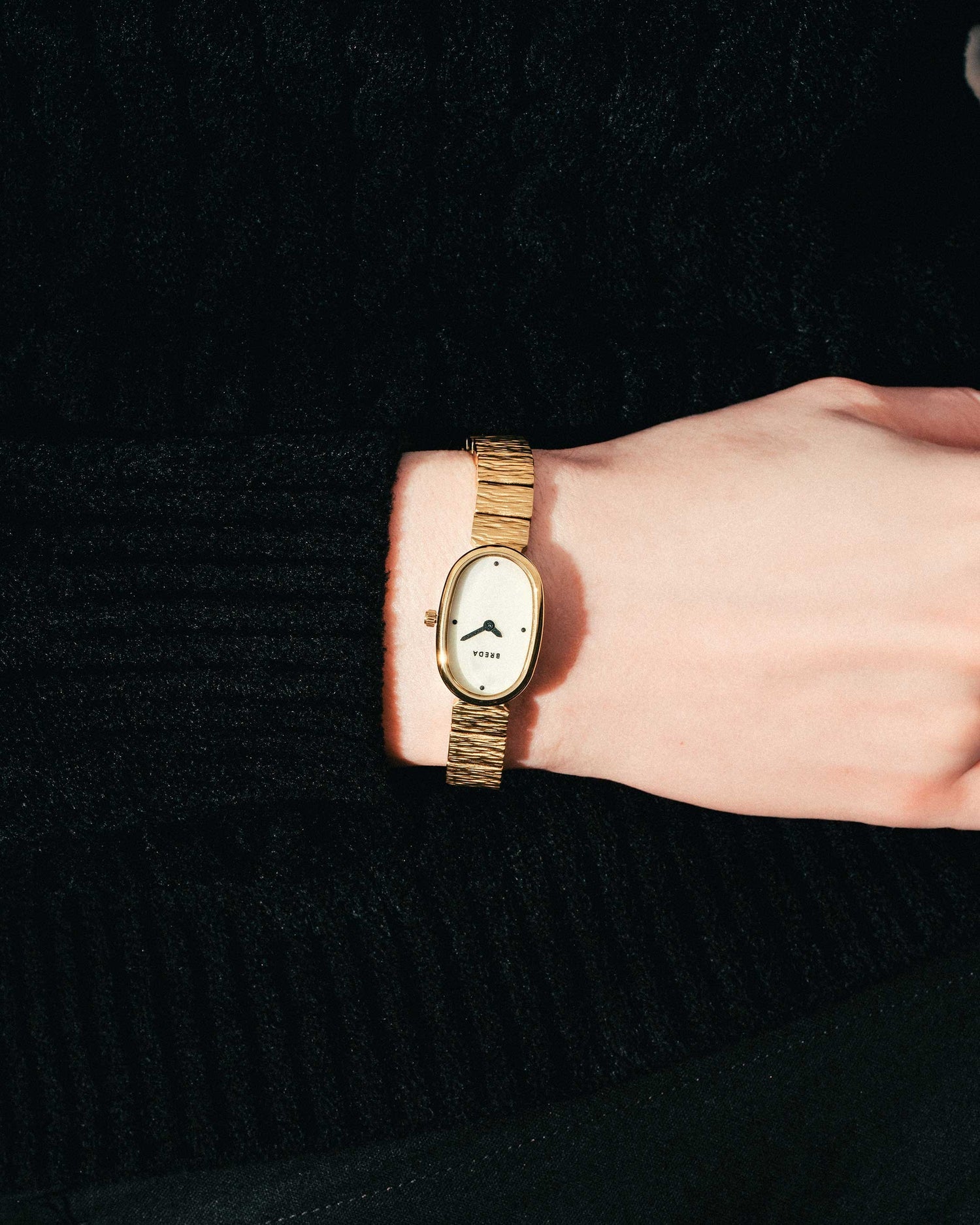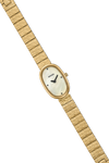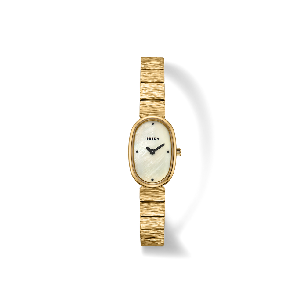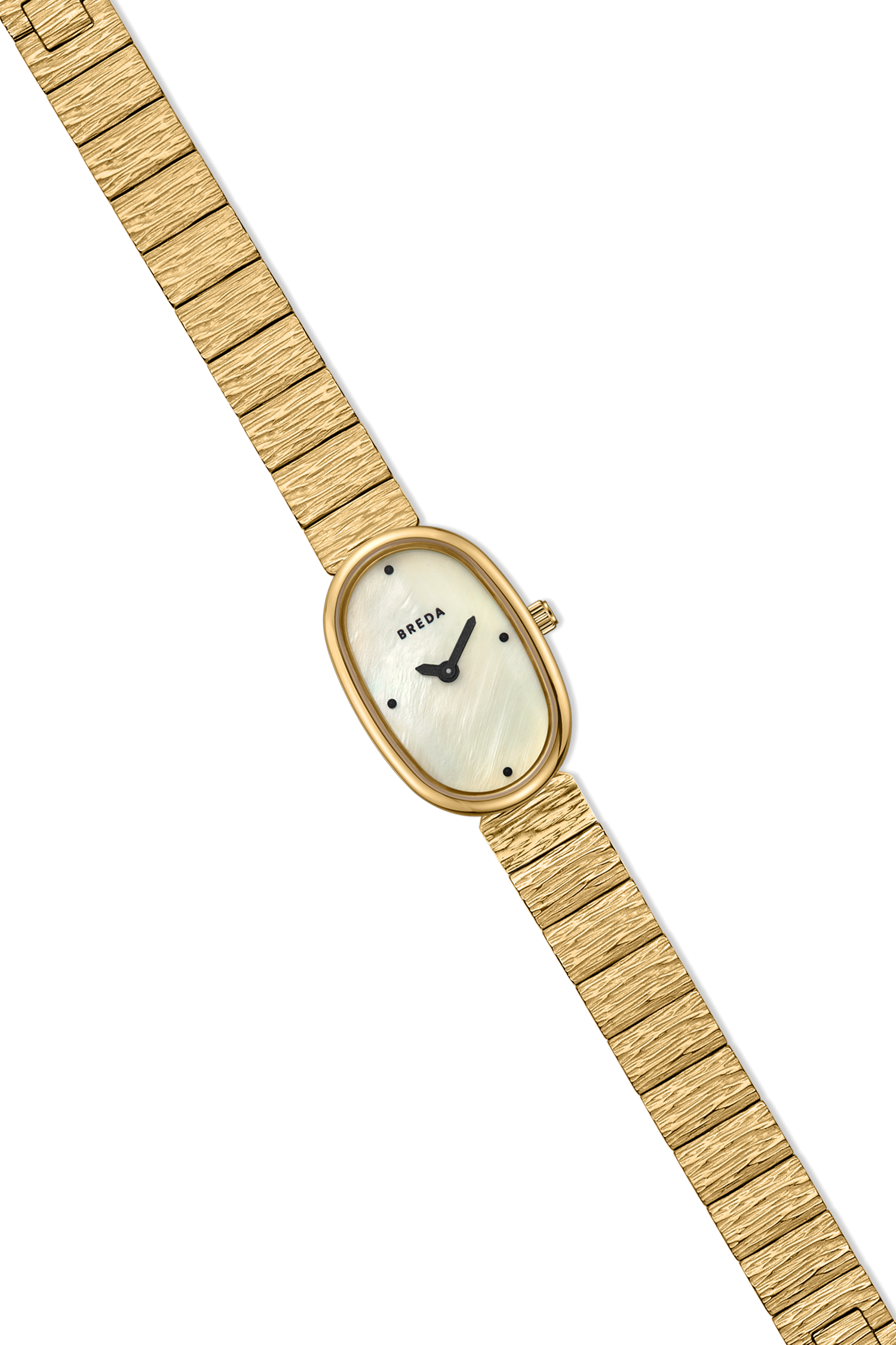 Revival koleksiyonu, şekil değiştirme, kendimizi yeniden keşfetme ve içgüdülerimizle yüksek bir amaca yönelme yeteneğimizi güçlü bir şekilde hatırlatır. Jane (Revival), zarif 18 mm oval kasa, şampanya rengi inci kadran ve derin 18K altın kaplama ile oymalı, karmaşık dokulu bir bilezikle donatılmıştır; bilezik mücevherli bir toka ile kapanır.