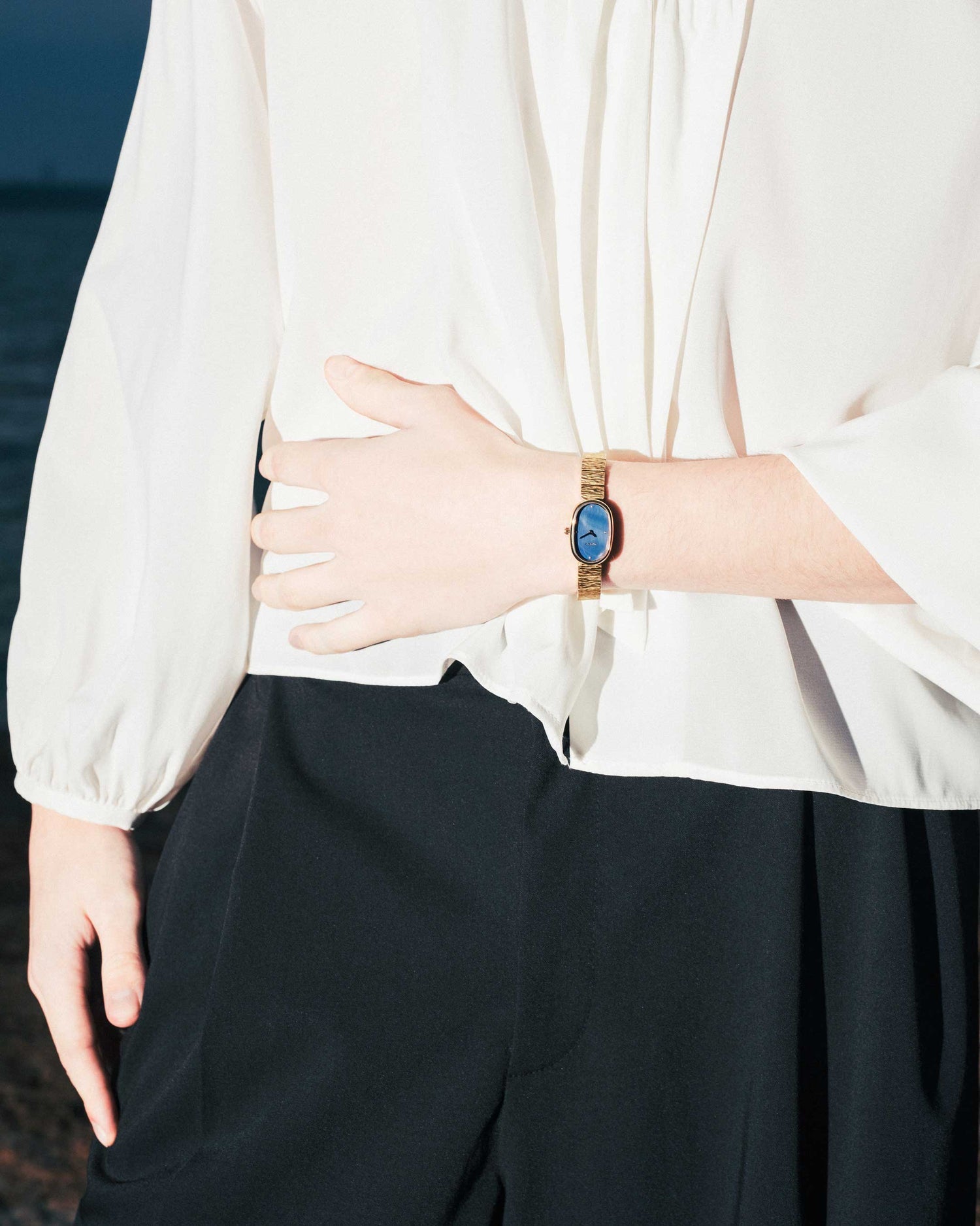 Revival Koleksiyonu, şekil değiştirme, kendimizi yeniden keşfetme ve içgüdülerimizle yüksek bir amaca yönelme yeteneğimizi güçlü bir şekilde hatırlatır. Jane (Revival), zarif 18 mm oval kasa, alacakaranlık mavisi inci kadran ve derin 18K altın kaplama ile oyulmuş karmaşık dokulu bir bilezikle donatılmıştır; bilezik mücevherli bir toka ile kapanır.