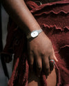 Tethered Koleksiyonu, insan bağlantımızın ve birbirine sarılmış, sonsuzca çökerek birleşen ortak anılarımızın günlük bir hatırlatıcısı olarak var. Jane (Tethered), zarif 23 mm oval kasa, şampanya rengi inci kadran ve hızlı açılır toka ile kapanan inceltilmiş dokuma ağ bilezikle donatılmıştır.