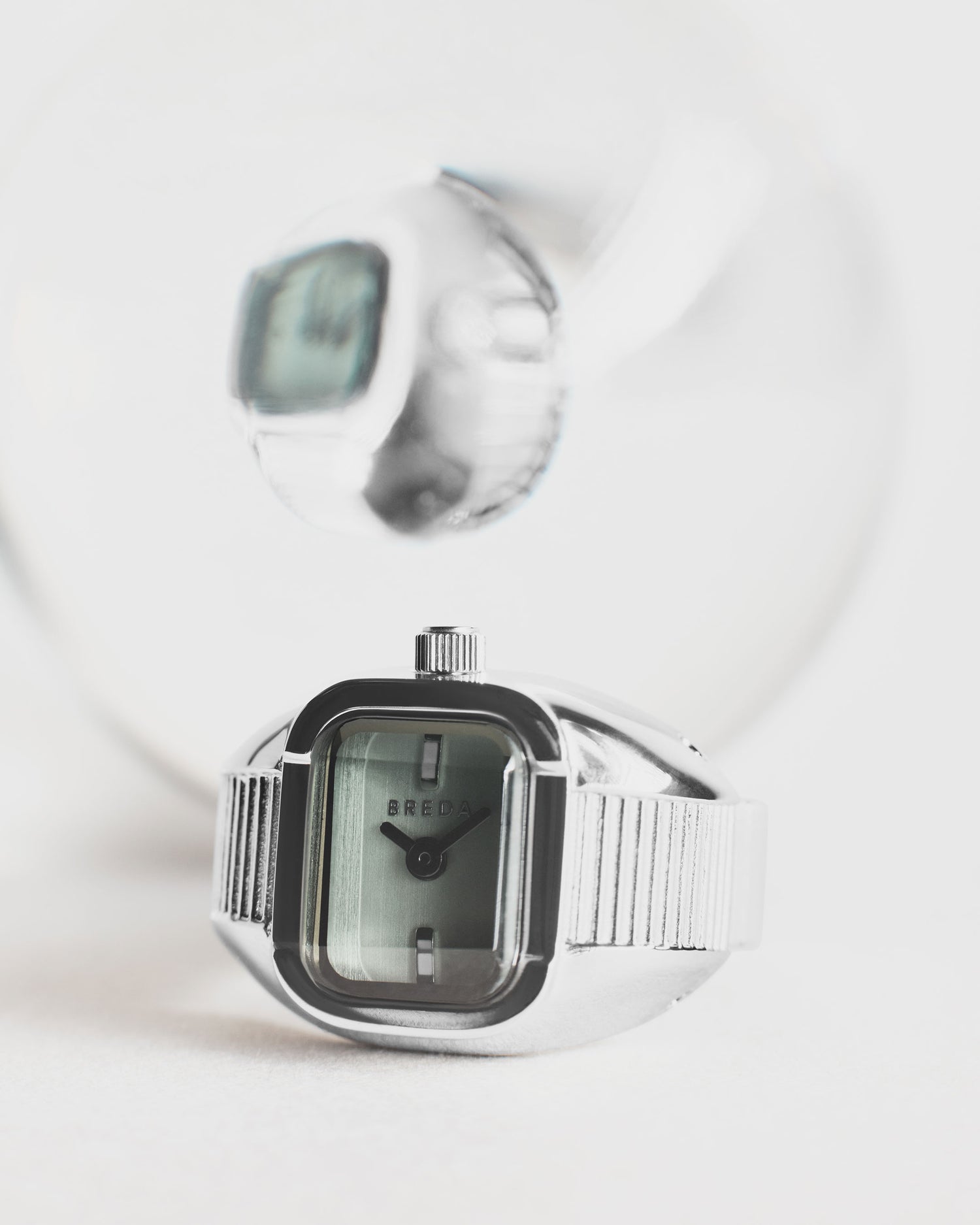 Gece ve zamanın etkileşimi ilhamıyla tasarlanan her bir saat, geceye ait güzelliğin özünü yansıtır. Nocturne Time Ring, paslanmaz çelik, yumuşak kenarlı 16 mm dikdörtgen kasa ve genişletilebilir bilezikle birleşen duman rengi kristaliyle dikkat çeker.