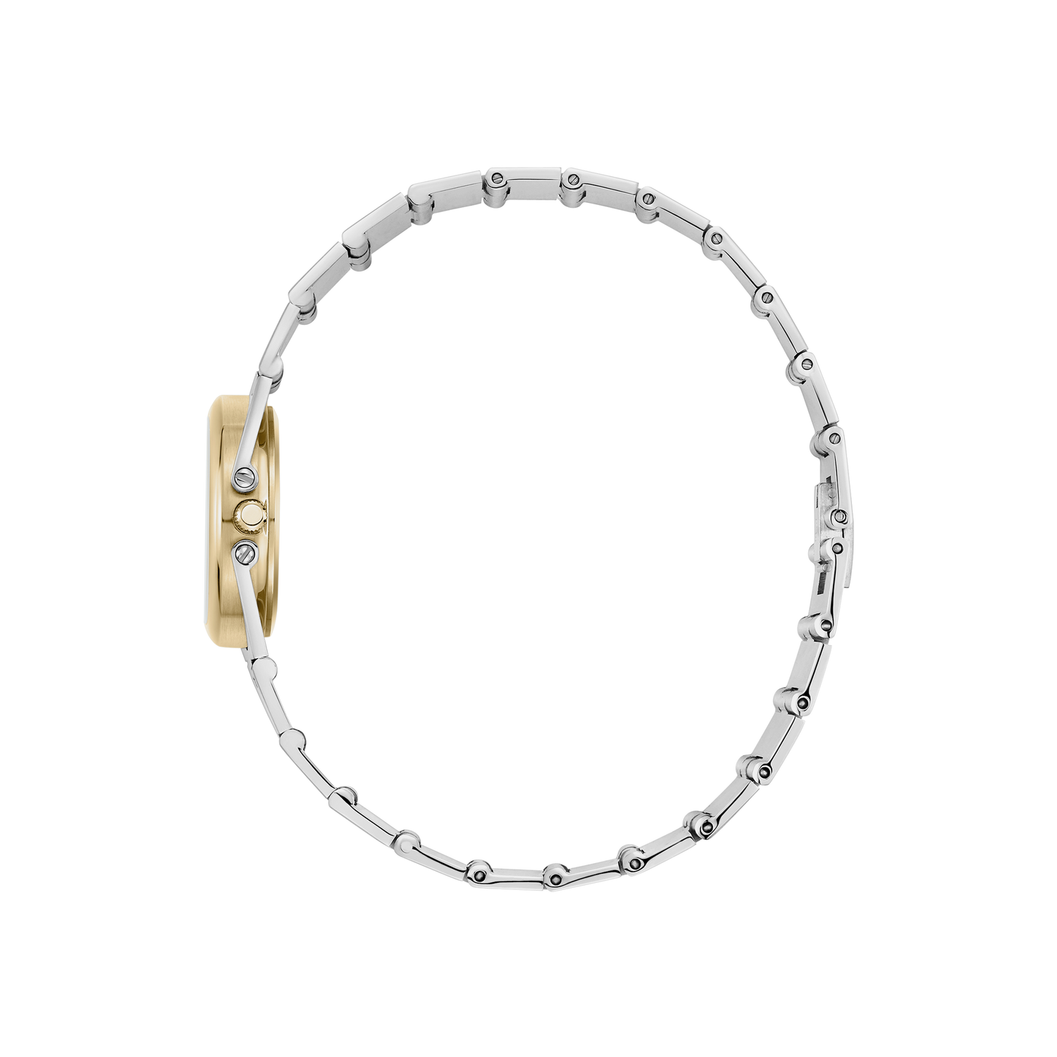 Sync Koleksiyonu, sona eren anların yeni başlangıçları kucakladığı tam daire anlarını kutlar. Sync modelinde zarif bir 25mm yuvarlak kasa, fırçalanmış kadran ve ince, 28mm daralan bir bilezik bulunur. Her bir bağlantı, bileği çevreleyecek şekilde pürüzsüzce dönebilmesi için menteşe mekanizmasıyla tasarlanmıştır.