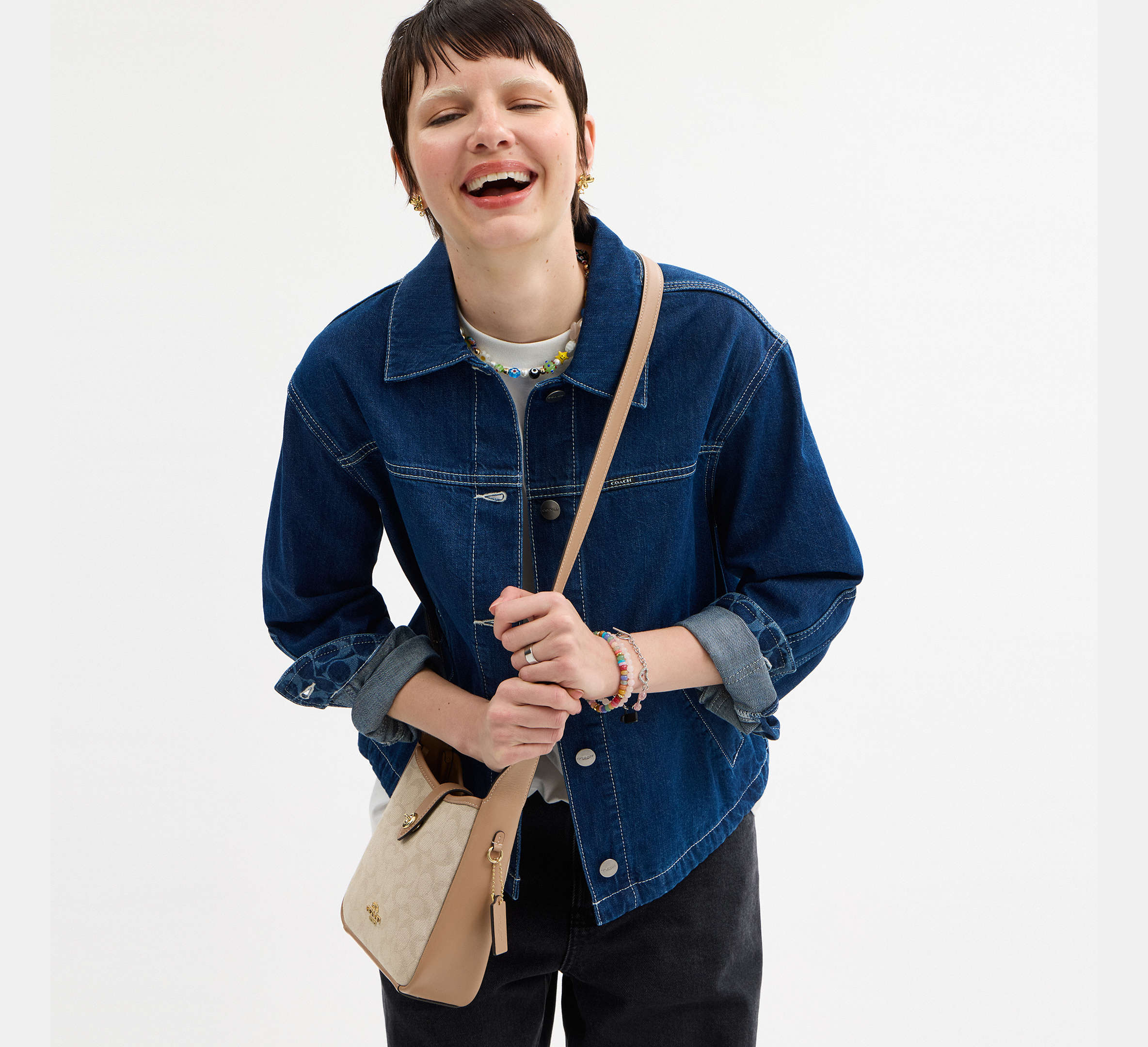 Coach Hadley Mini Crossbody Bag With Signature - Gold/Dark Natural Multi