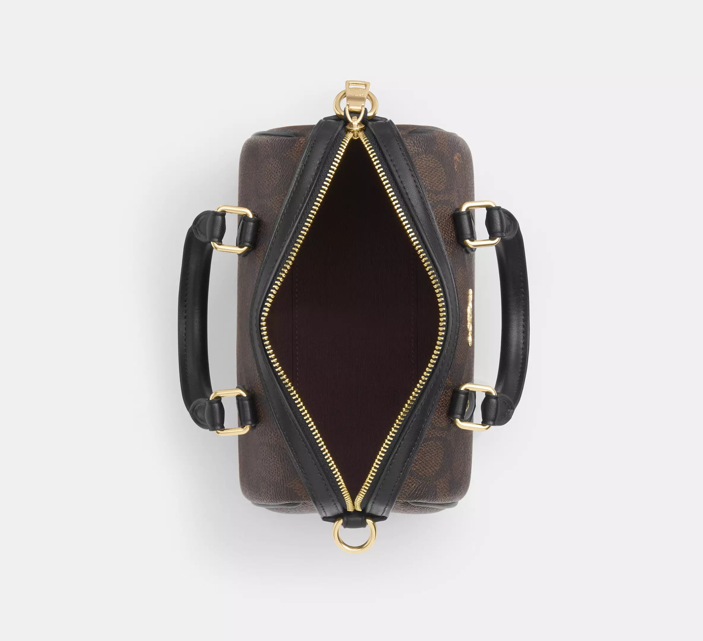 Coach Boxed Mini Rowan Crossbody Bag And Mirror Bag Charm Set In Signature - Gold/Walnut/Black