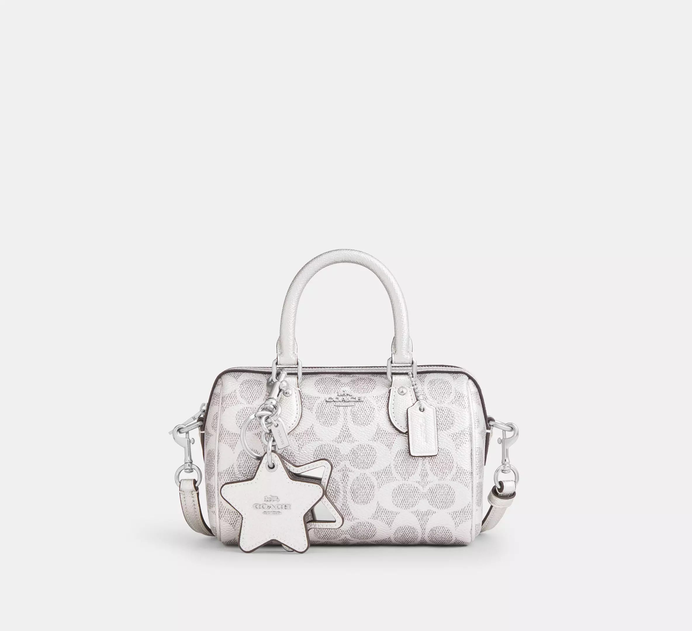Coach Boxed Mini Rowan Crossbody Bag And Mirror Bag Charm Set In Signature - Silver