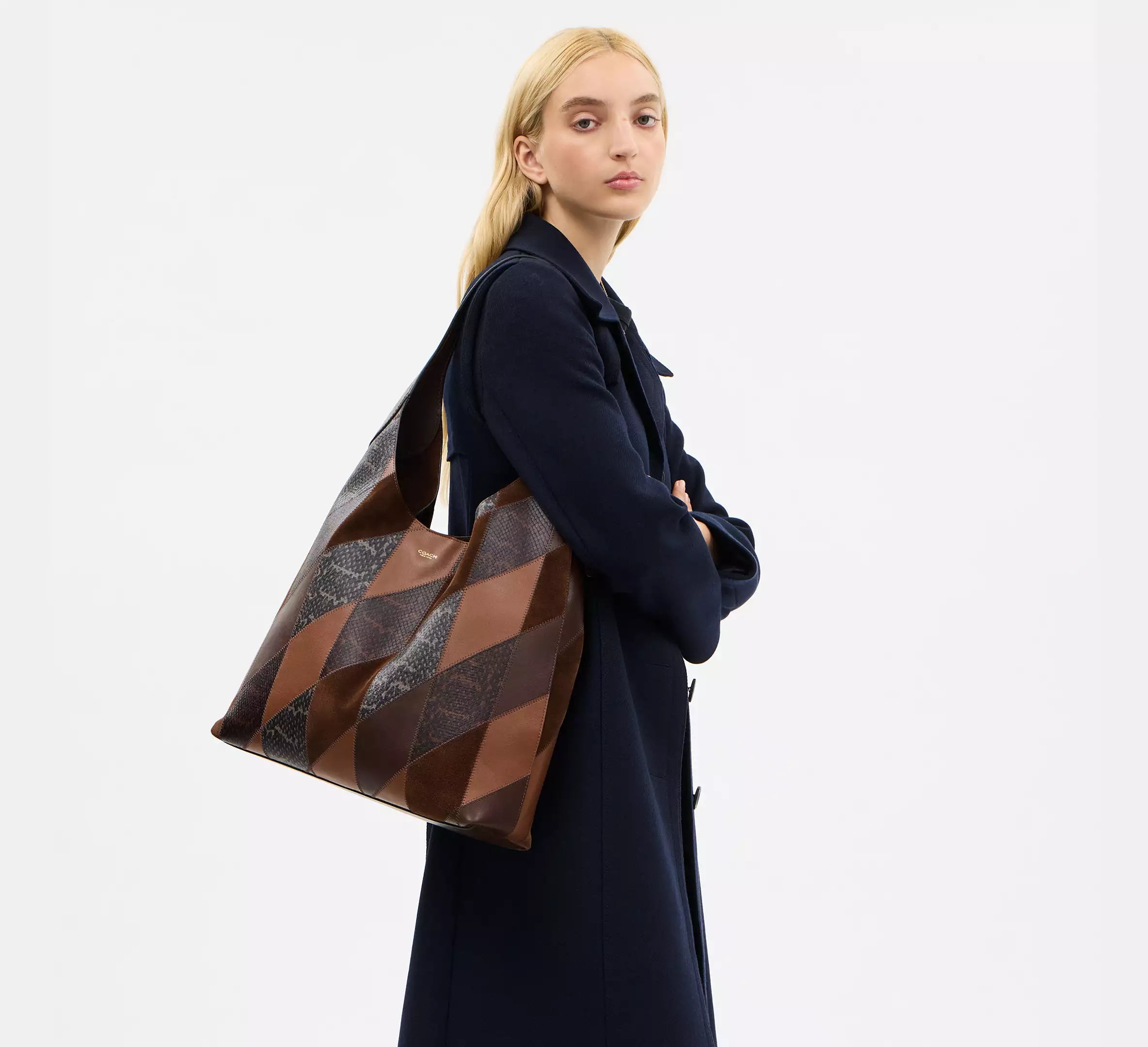 Coach Brooklyn Shoulder Bag 39 With Snakeskin Patchwork - Brass/Maple Multi