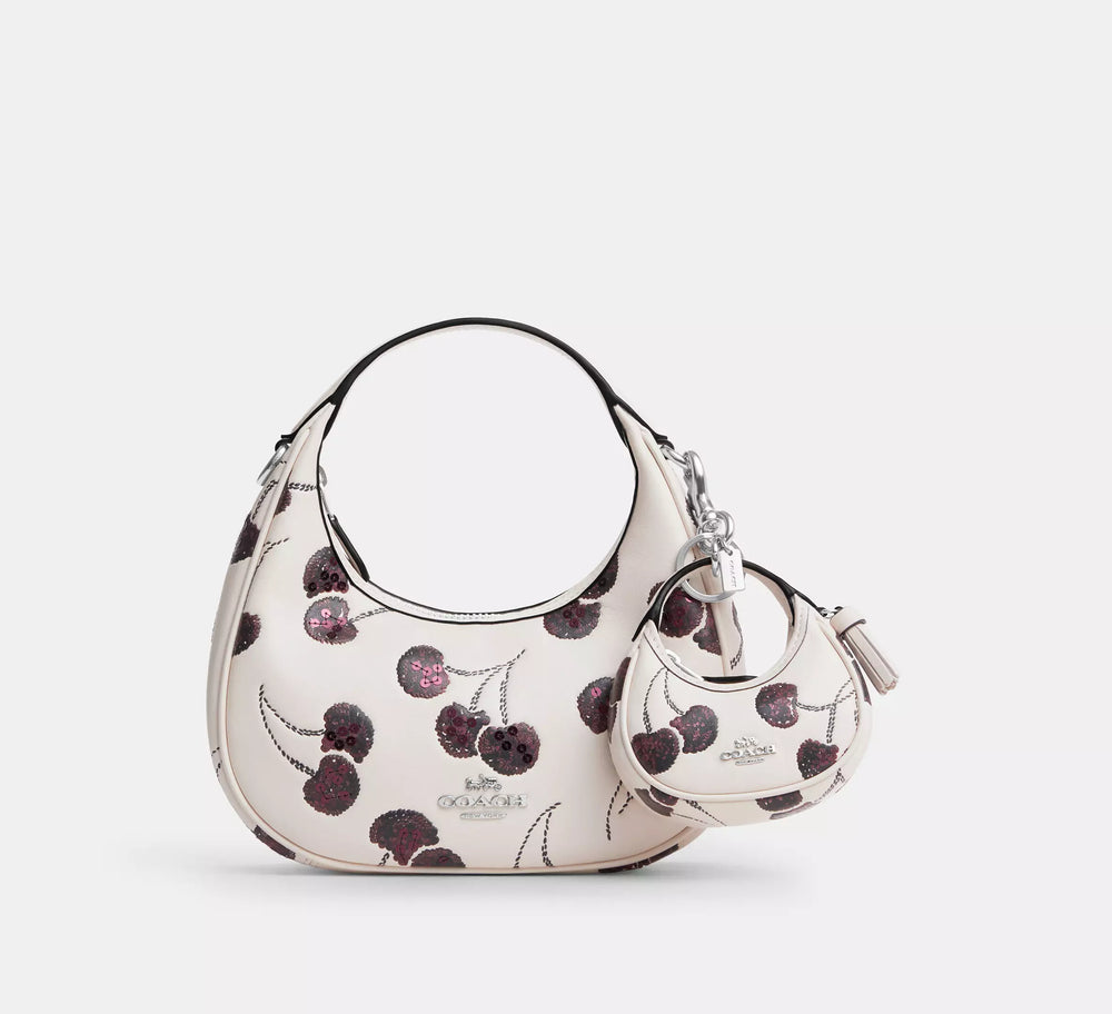 Coach Carmen Bag Charm With Cherry Print - Silver/Chalk Multi