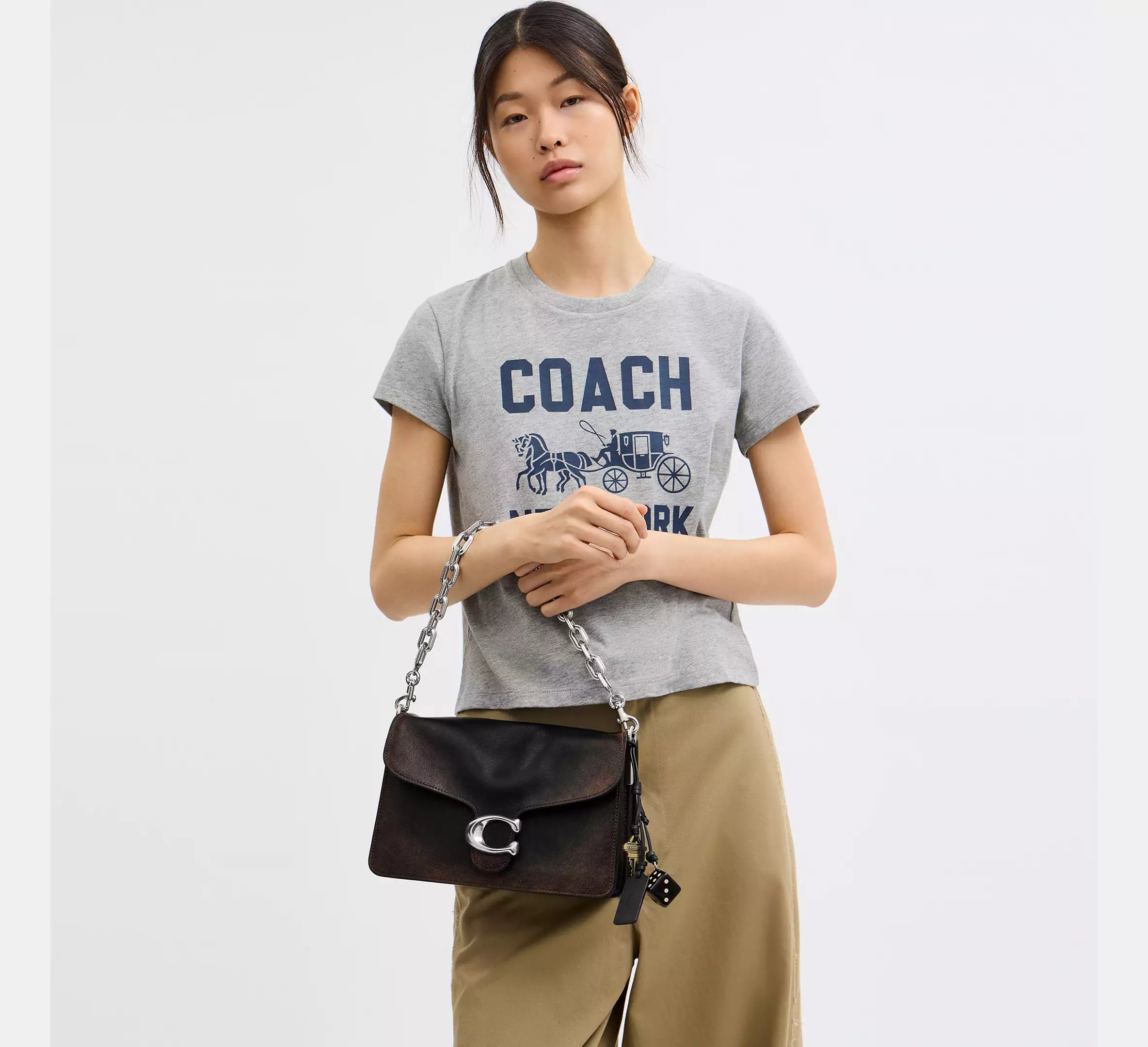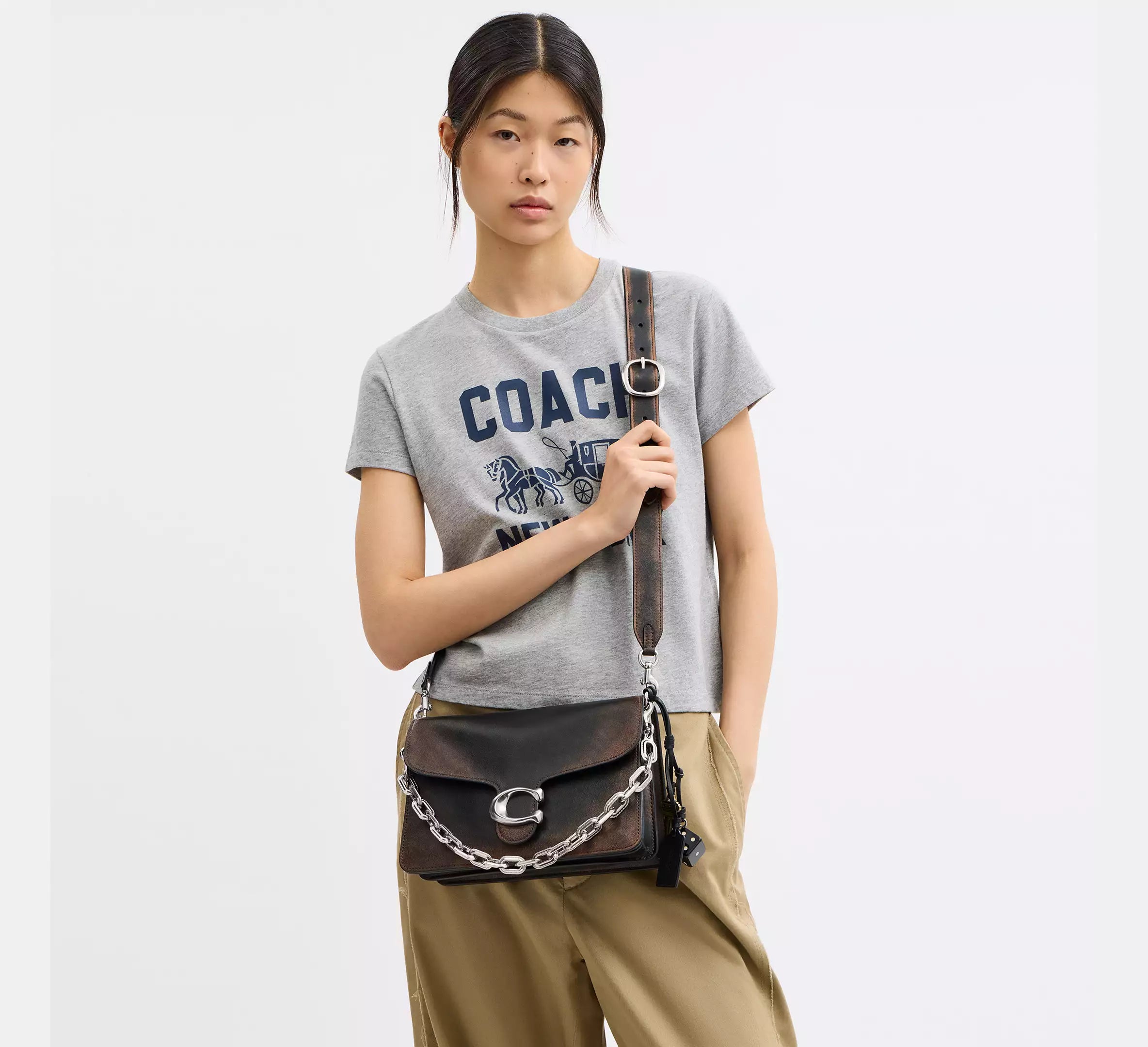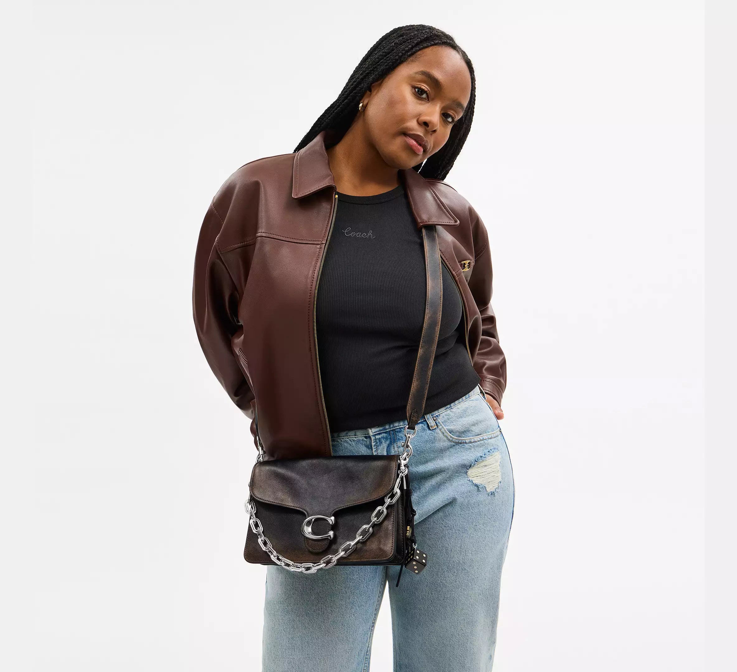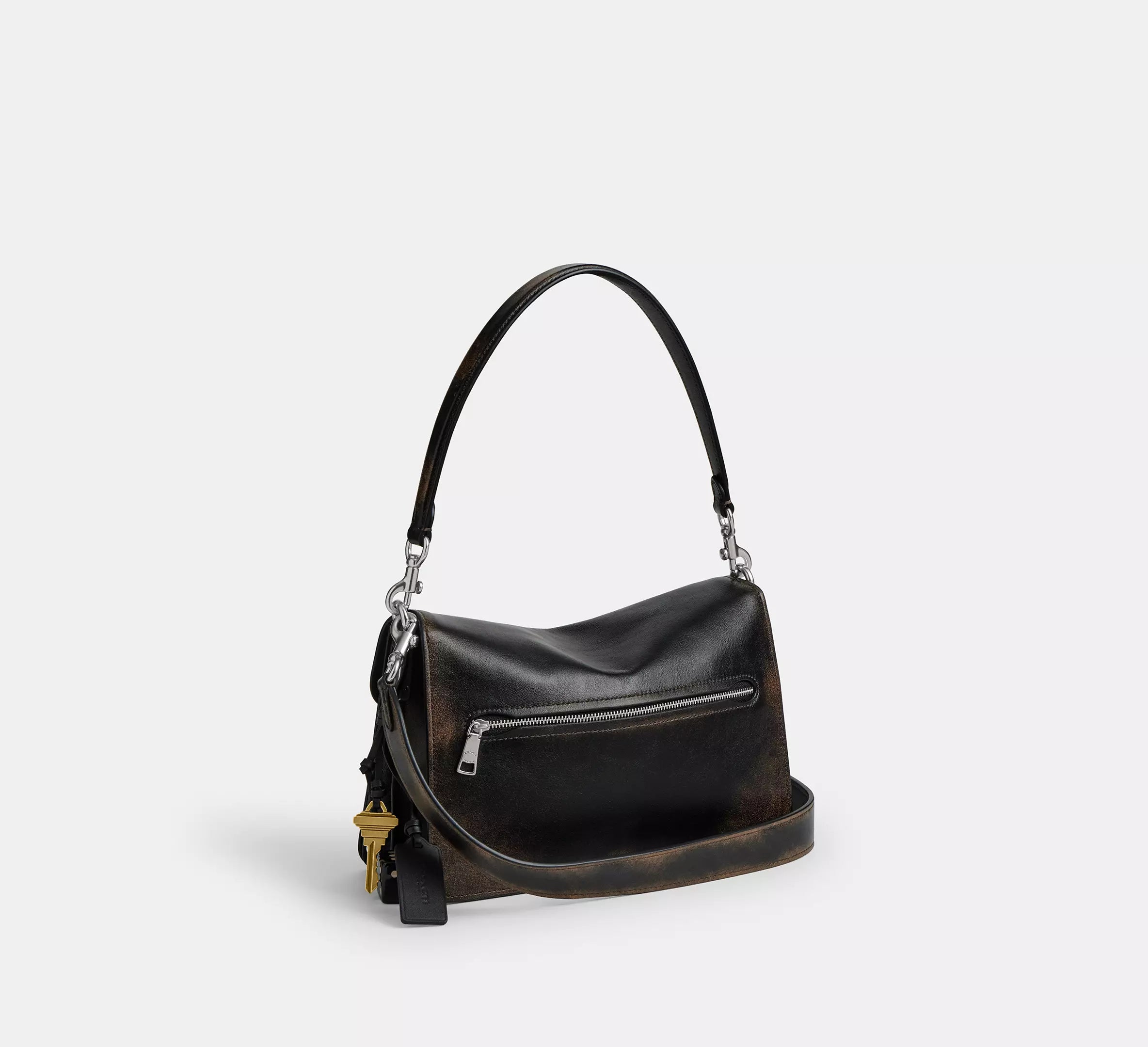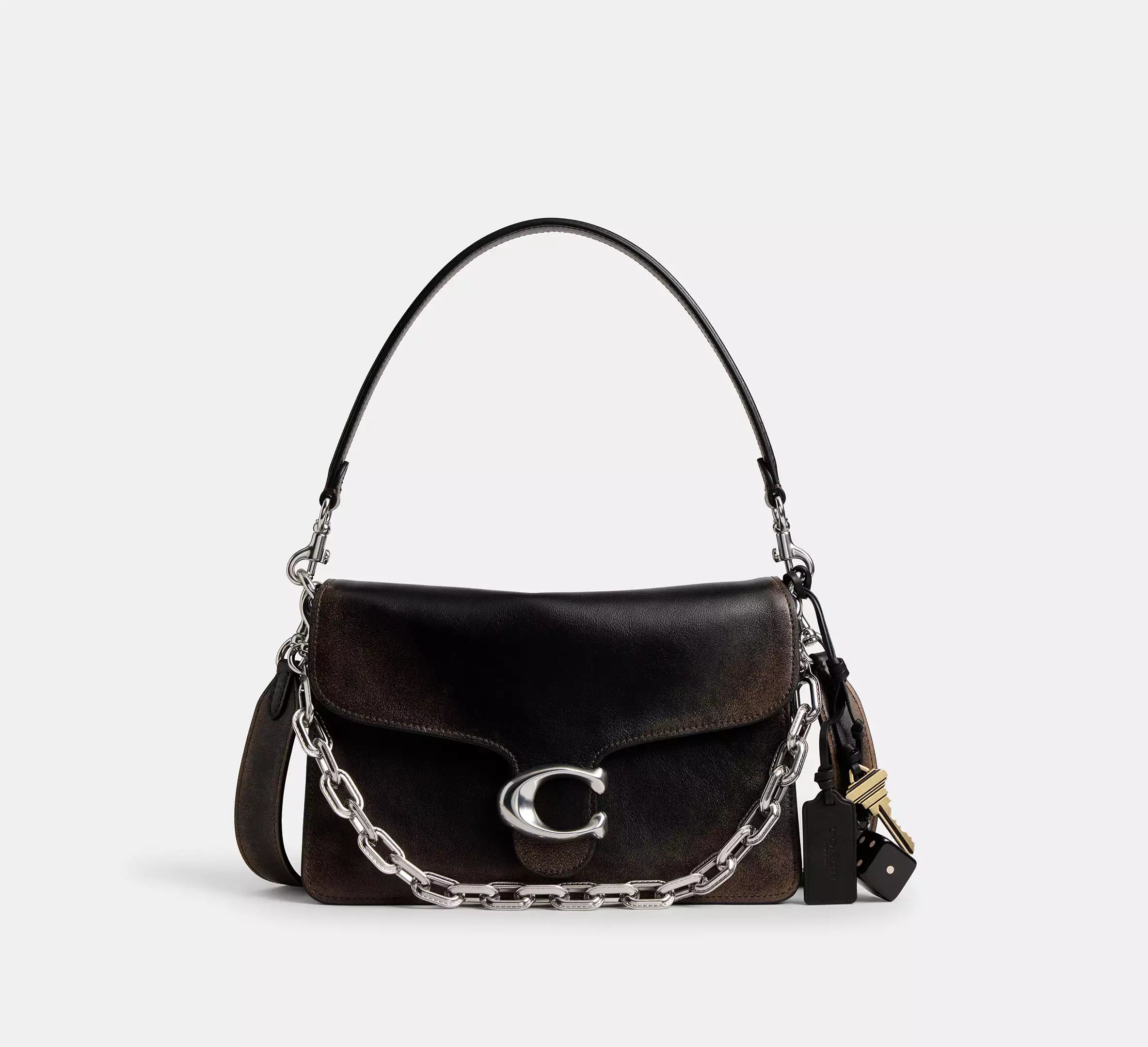 Coach Chain Tabby Shoulder Bag In Loved Leather - Silver/Black Brown