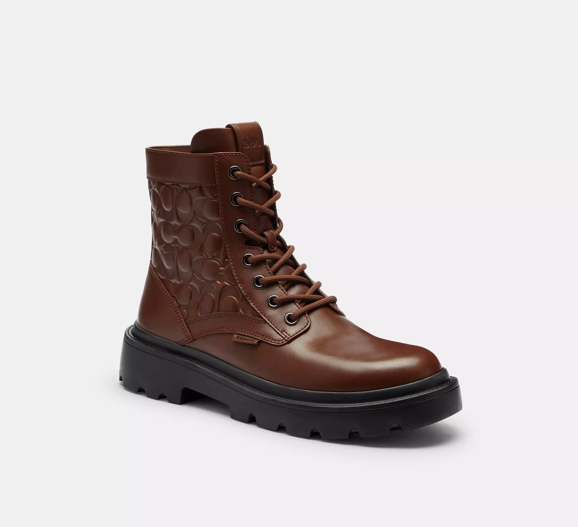 Coach Men's Combat Boot In Signature Leather - Vintage Brown
